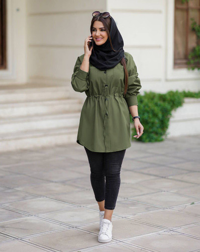 مانتو دانشجویی کوتاه کمرگت دار فری سایز تا ۴۶۷۹۰٬۰۰۰ تومان