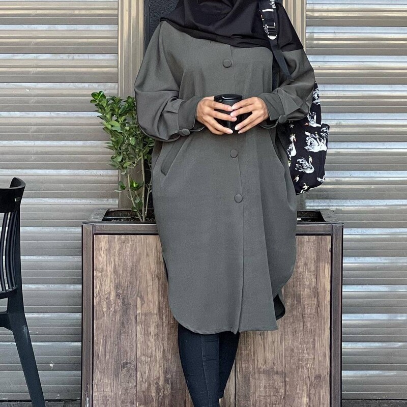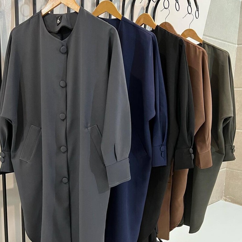 شناسه : #50324 نام : طرح توکا جنس : مازراتی رنگ بندی : سرمه ای, یشمی, طوسی, مشکی, قهوه ای سایز ها : فری سایز مناسب ۳۸ تا ۵۰ قد کار حدودا ۱۰۰ دکمه های جلوی مانتو کاربردی هست و جیب ها قابل استفاده