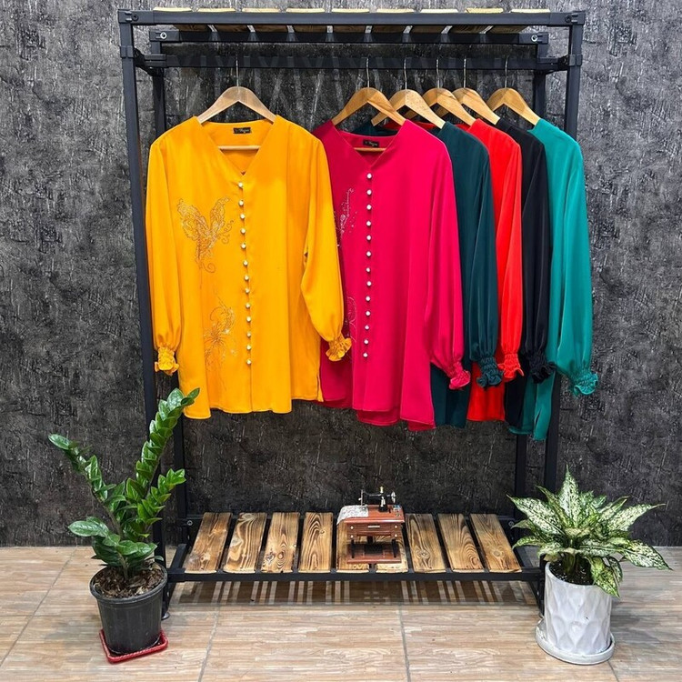 1443 شومیز الیزا جلو دکمه نگین پروانه