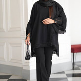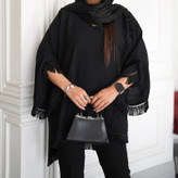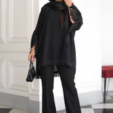 تونیک بلند مشکی ریش دار محرمی فری سایز تا 44 خنک و تابستونی