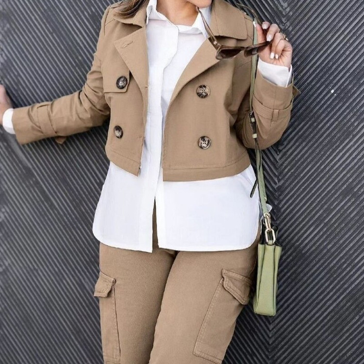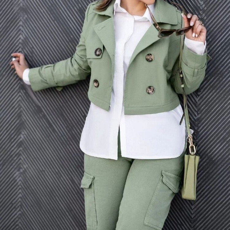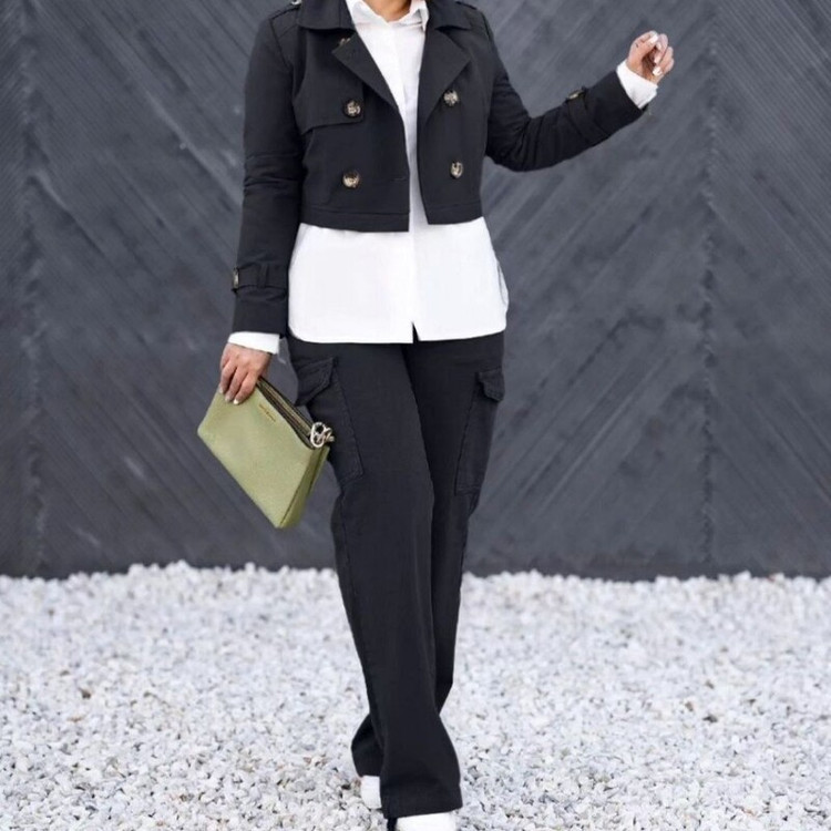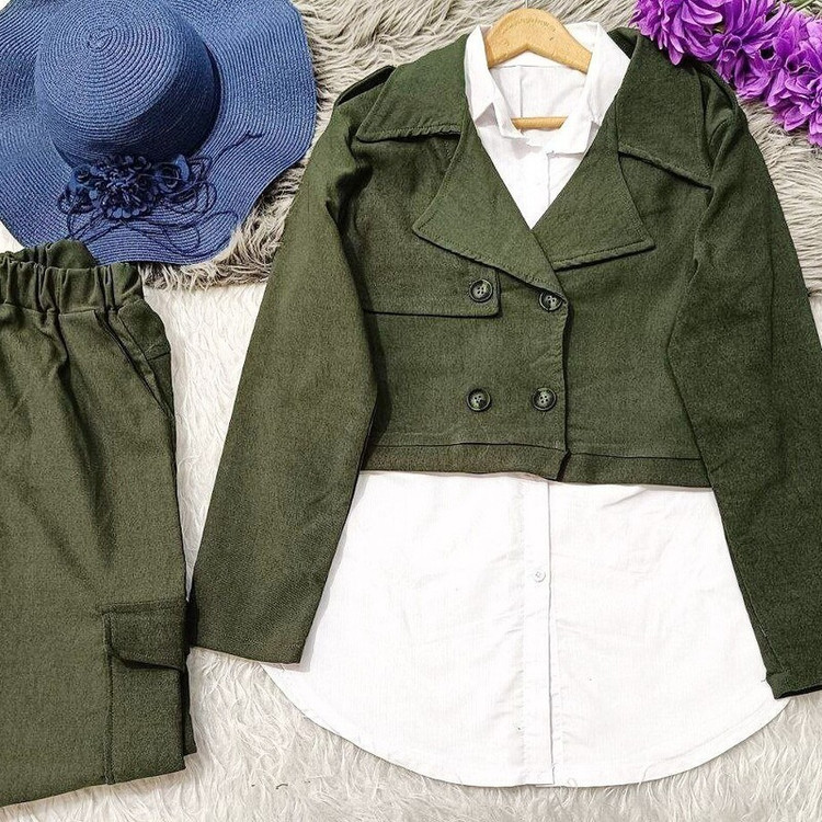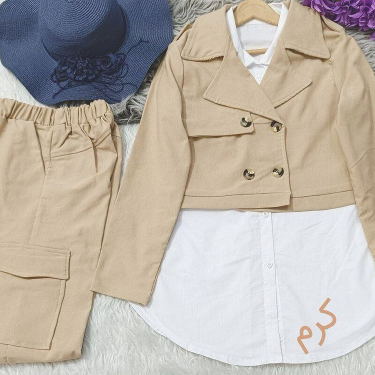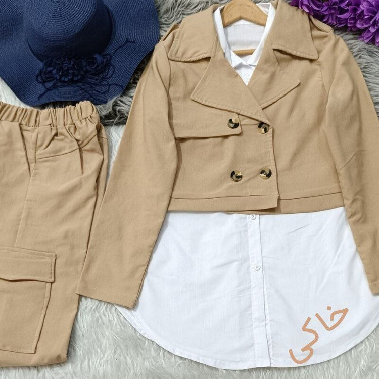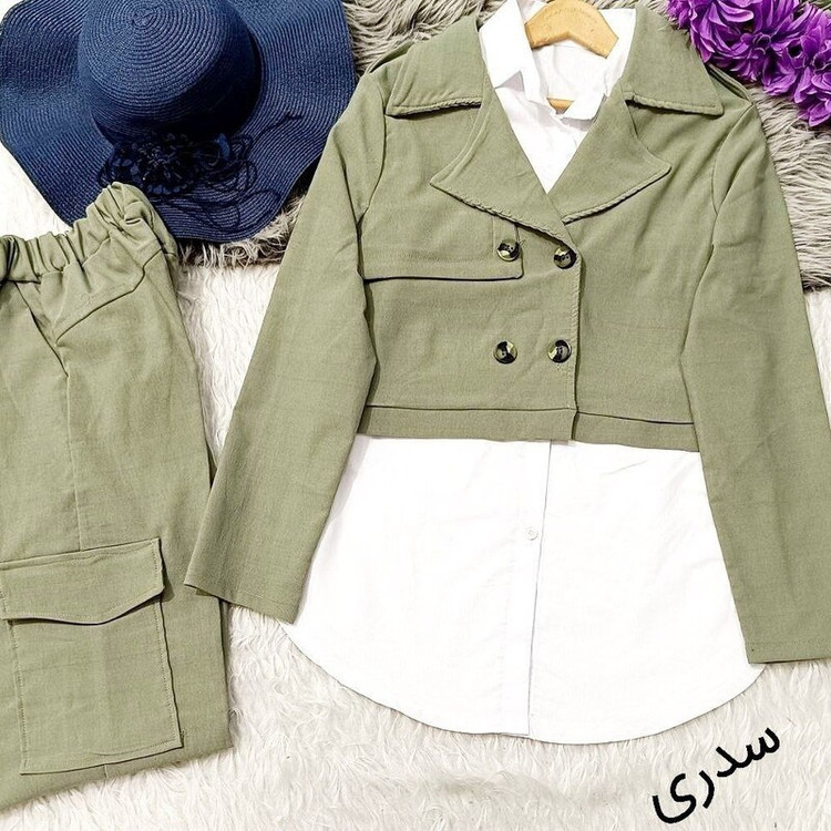 ست سه تیکه کت شلوار و شومیز کارگو کتان فری سایز تا 46