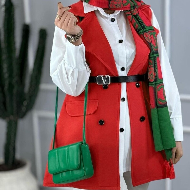 یه ست سه تیکه آوردم براتون فوقالعاده زیبا با تنخور عالی 🥰👌 #کالکشن_بهارتابستان 🌿جنس : وست مازراتی شومیزتترون نخ👌 🌿رنگ بندی : نسکافه ایی،سفید،سرخابی،مشکی،حنایی،کالباسی،نارنجی،قرمز 🌿سایز36_۵۰ 🌿قدوست حدودا80 🌿قدشومیز72قداستین 56 🌿سگک کمربند ها رندوم رنگبندی طبق کالیته رنگ در ۵۰ رنگ قابل دوخت هستش قد و سایز قابل تغییر هست .