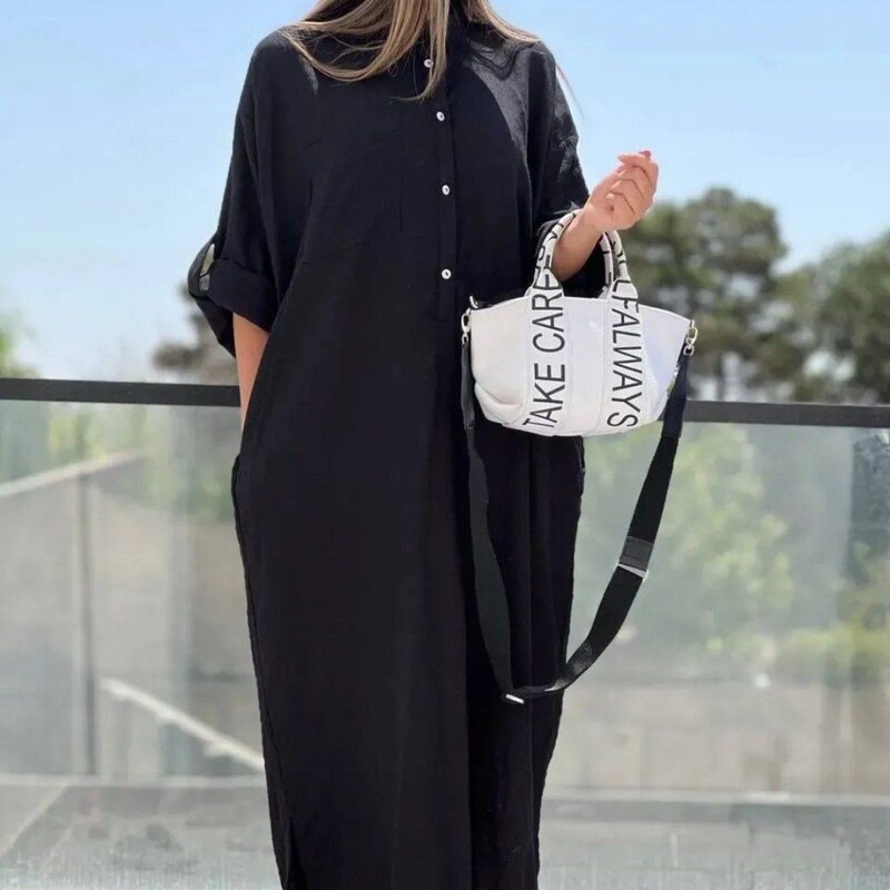 پیراهن خنک و شیک مناسب تابستان با دوخت و جنس درجه یک🤌🥰 #کالکشن_محرم_و_تابستان1403🖤🏴 🌿جنس:ابروبادی 👌🥰 🌿رنگبندی : مشکی 🌿فری سایز 38_56 🌿قدحدودا130 🌿قدآستین از یقه 72 🌿چاک پایین پیراهن 22 🌿دکمه های یقه کاربردی 🌿دوربازو وزیربغل کیمونو میباشد 🌿محدودیت سایزی ندارد 🌿دارای کمربندجهت تنظیم سایزمیباشد 🌿دارای جیب کاربردی 🌿آستین کار قابل گت شد