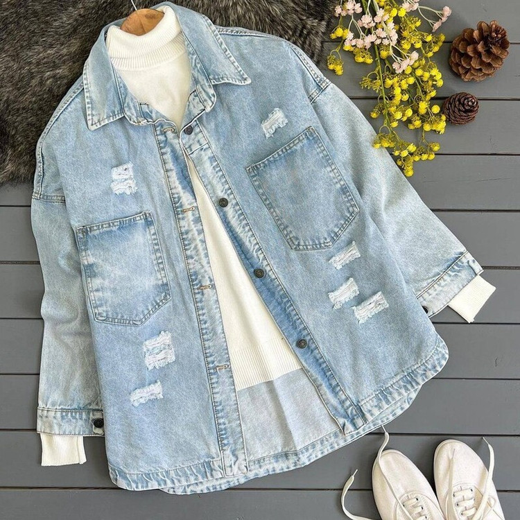 استايلتو به روز و جذابتر كن 🥰 فریسایز مناسب تا ۴۶ (دور سینه ۱١٠ ) قد ٧٨ - آستین نرمال بلند جنس: جين