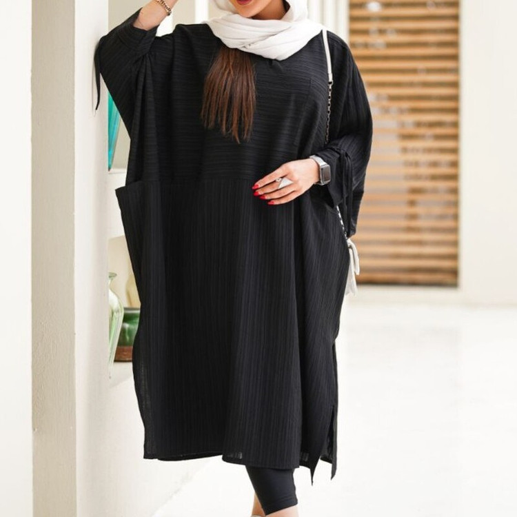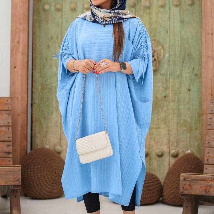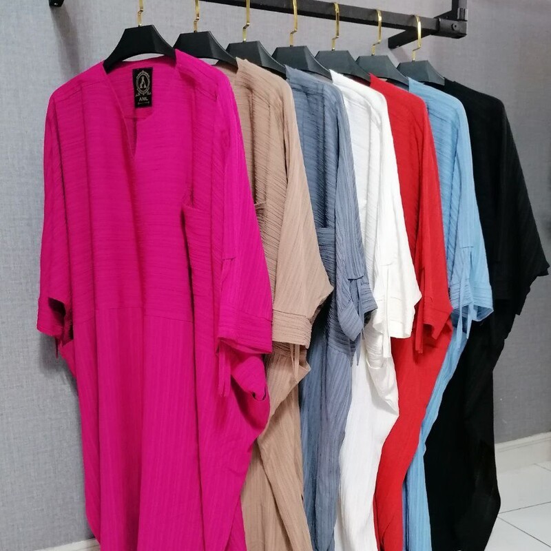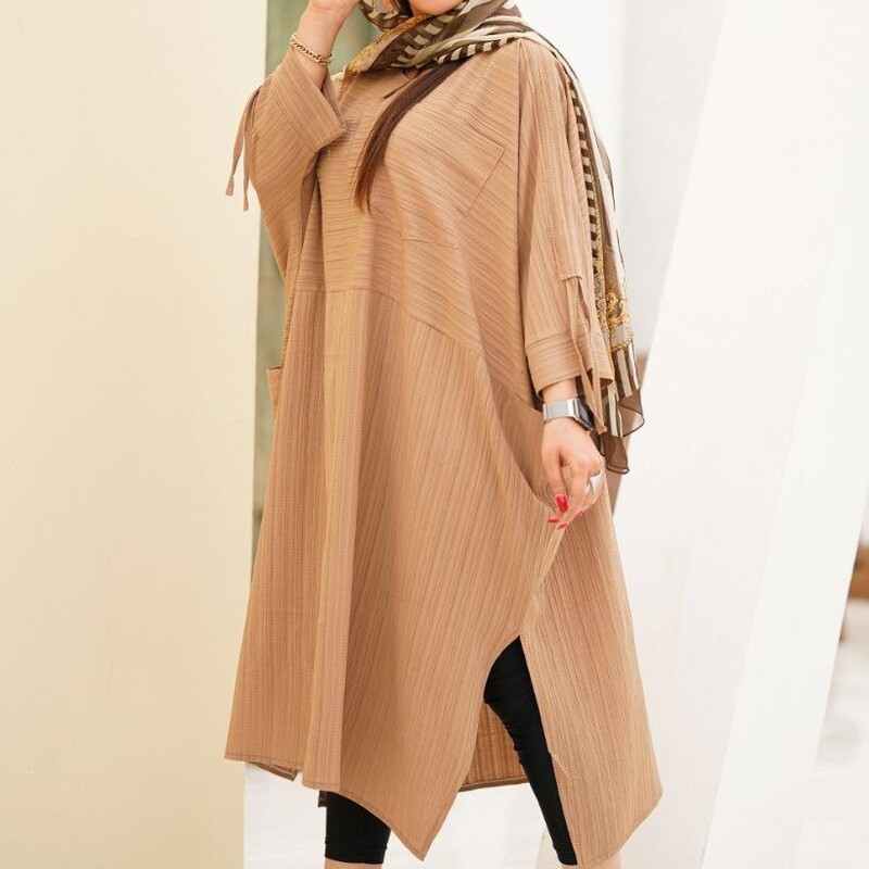مانتو بلند تابستانه مدل کفتان سه جیب آستین گتر