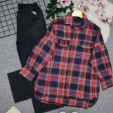 تونیک مانتویی چار خونه با آستین پفی ،یه کار شیک و ترند ک با شلوار مام یا راسته فوقالعاده جذاب میشه😍