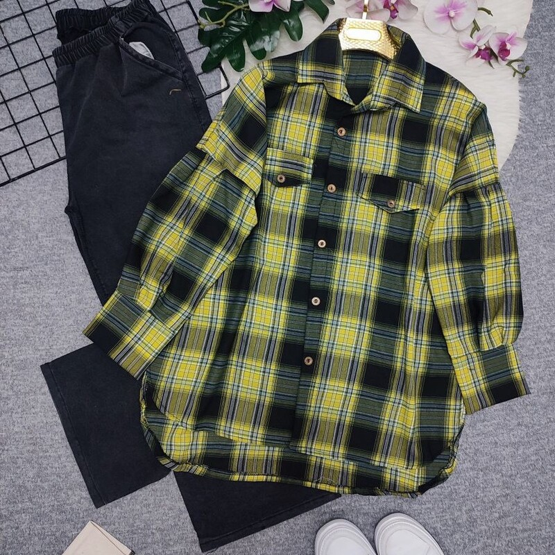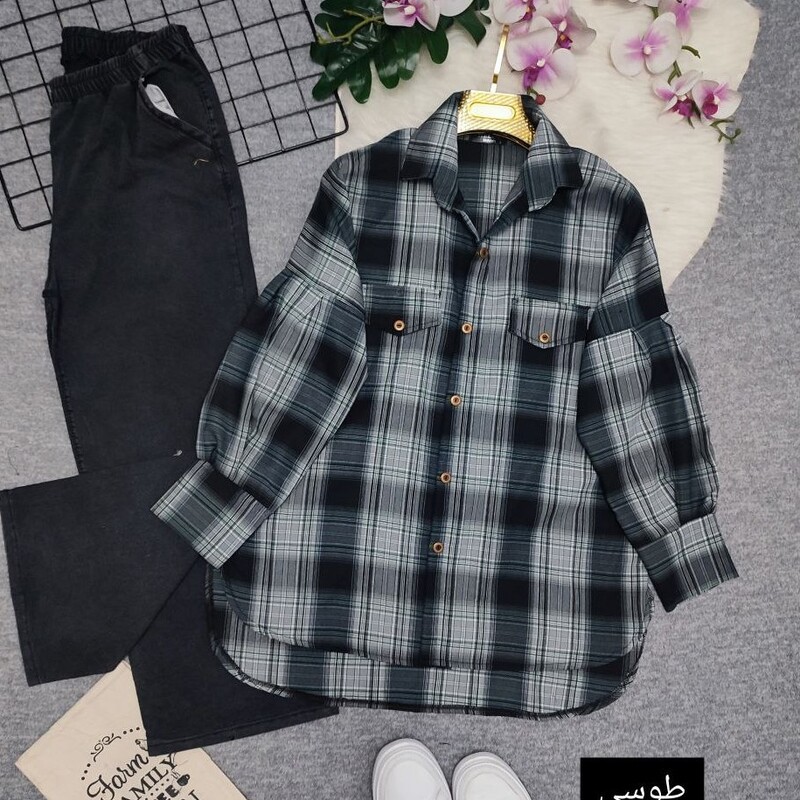 تونیک مانتویی چار خونه با آستین پفی ،یه کار شیک و ترند ک با شلوار مام یا راسته فوقالعاده جذاب میشه😍