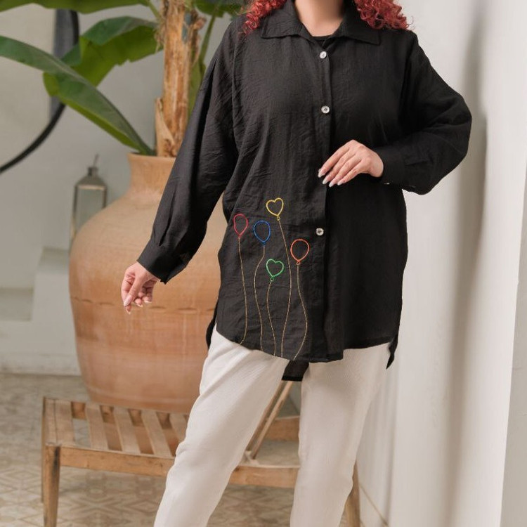 شومیز مانتویی مشکی خنک تابستونی قد 75 فری سایز تا 46