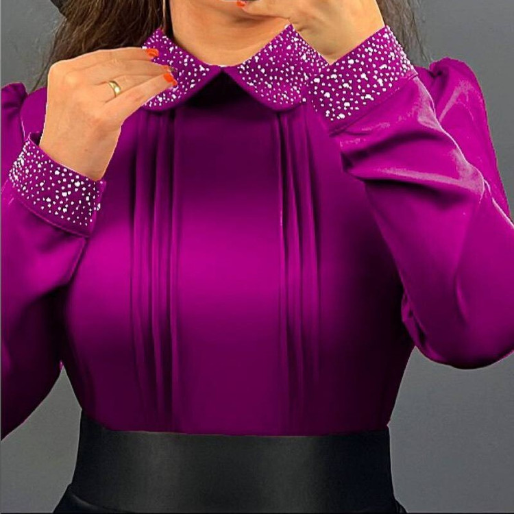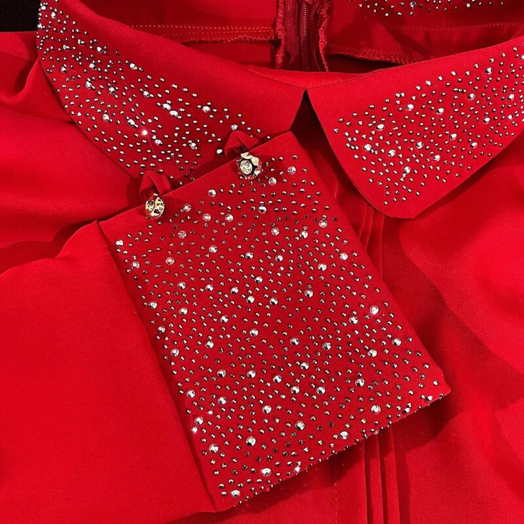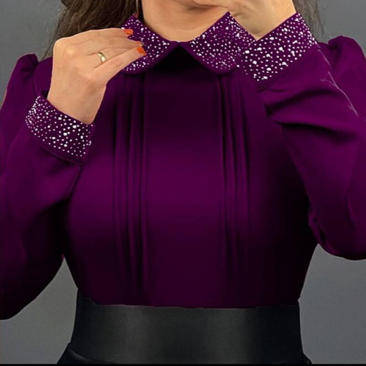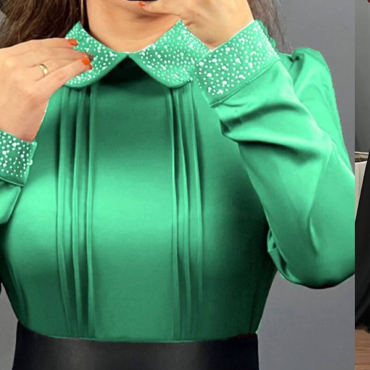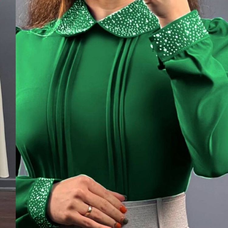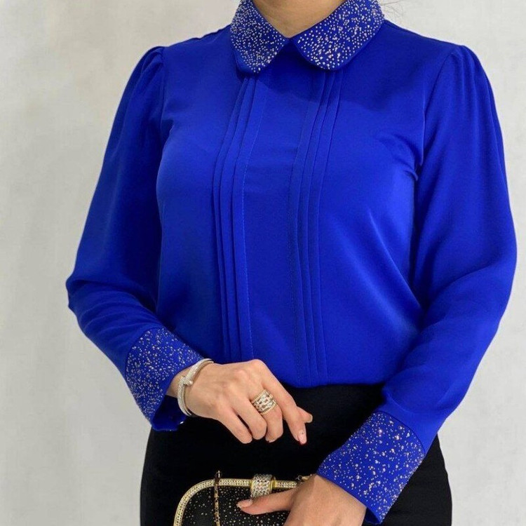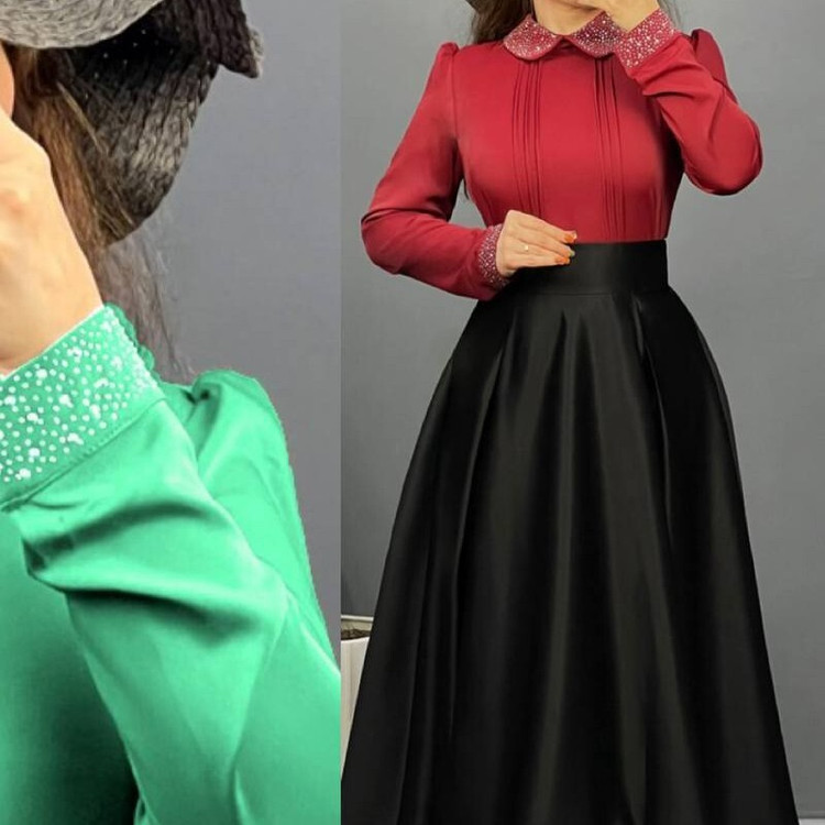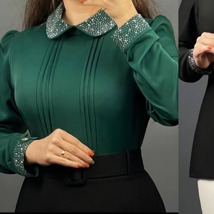 شومیز یقه نگین جنس: پارچه الیزه گرم بالا ترک قسمت استین و یقه خرج کارdmc نگین کاری شده بدون ریزش قدکار 80❌ سایز1 (40 تا 44)دور سینه 98 سایز 2(46 تا 48)دور سینه102 سایز 3(48 تا 52) دور سینه 112