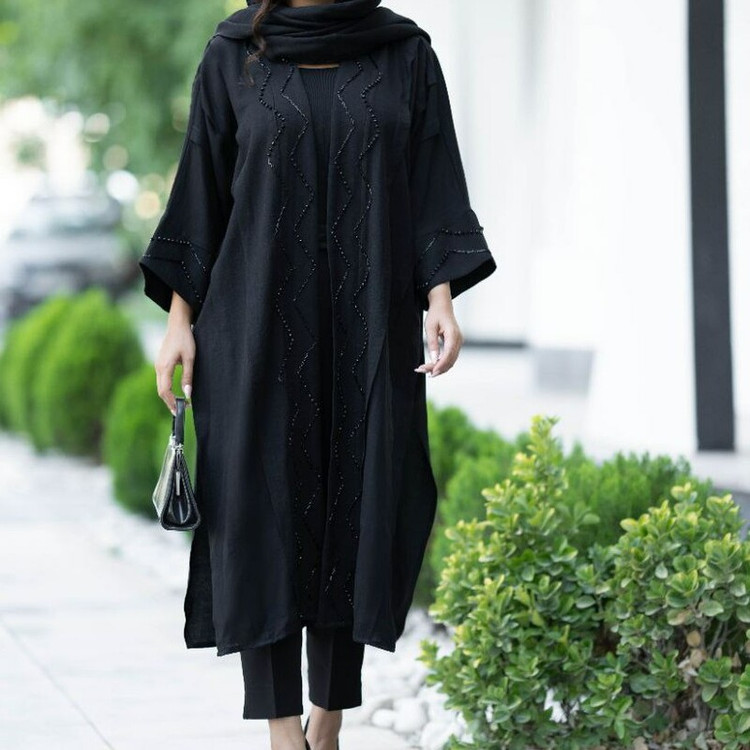 مانتو بلند مشکی مانتو بلند مجلسی سنگ دوزی شده کرسپو درجه یک مانتو سایز بزرگ فری سایز تا 56