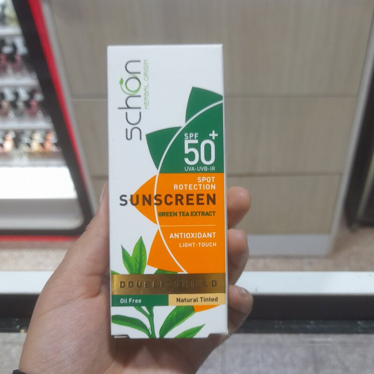 ضد آفتاب دابل شیلد شون رنگی طبیعی فاقد چربی مناسب پوست های چرب و مستعد جوش SPF50