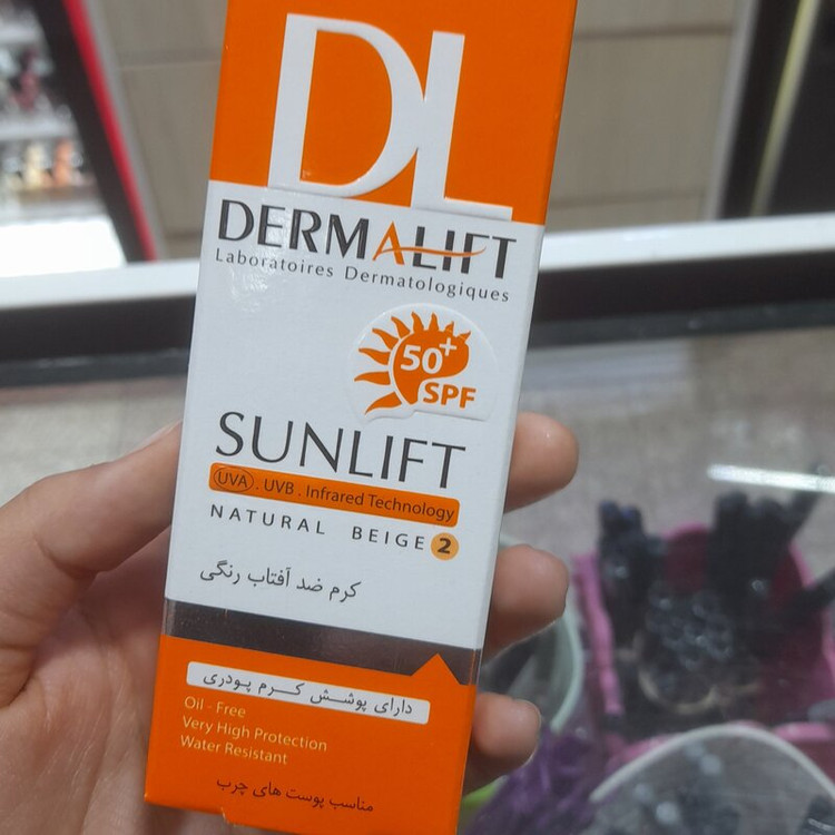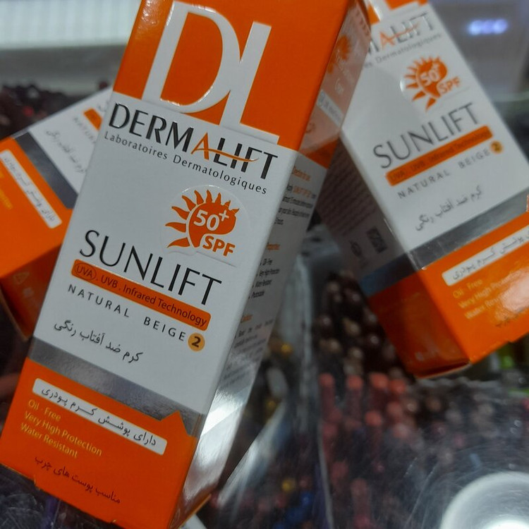 ضد آفتاب رنگی درمالیفت دارای پوشش کرم پودری با رنگ طبیعی2- مناسب پوست های چرب SPF50