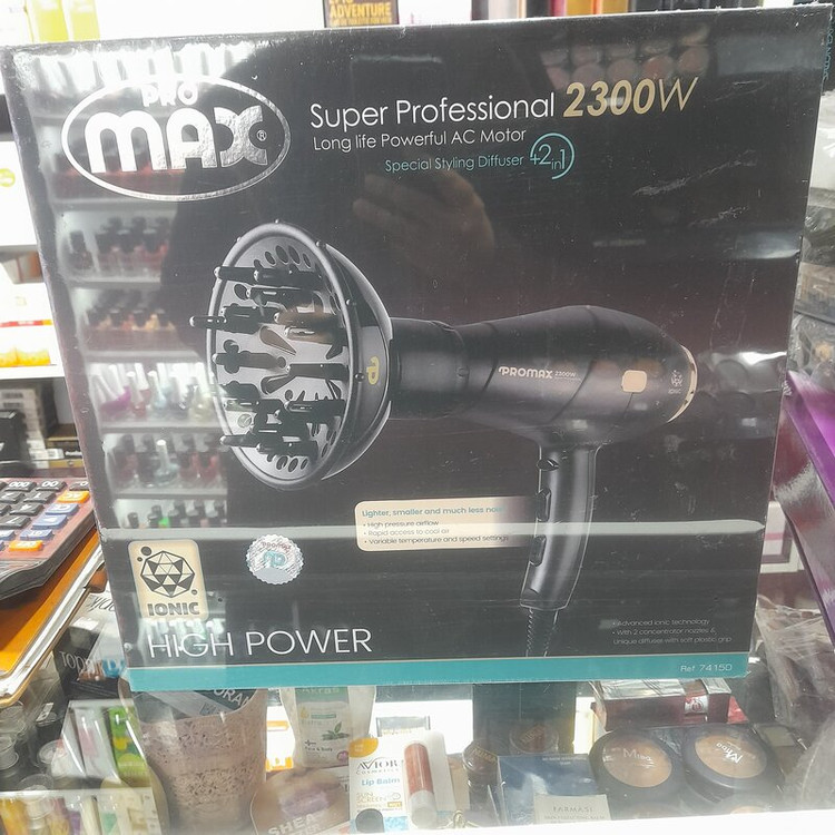 سشوار 7415D پرومکس، یکی از زیباترین، سبکترین و در عین حال حرفه ترین سشوارهای این برند است. این سشوار در کنار طراحی زیبا و لوکس خود، از قدرت 2300 وات بهره می برد. ویژگی دیگر این سشوار مجهز بودن به دیسپانسر برای ایجاد فرهای زیبا در موی سر، بدون استفاده از موپیچ می باشد. موتور این سشوار AC می باشد. موتورهای AC و DC دو نوع مختلف از موتورهای سشوار هستند که تفاوت عمده آن ها در قدرت و فشار باد خروجی و طول عمر دستگاه است. موتورهای AC عمر و قدرت خروجی بیشتری داشته و برای استفاده های حرفه ای و طولانی مدت مناسب تر هستند. این سشوار 2300 وات در کنار قدرت بالا، از امکاناتی همچون یک عدد دیسپانسر، تکنولوژی یون منفی، دکمه باد سرد (کول شات)، دو حالت تنظیم باد، سه حالت تنظیم حرارت و دو سری متمرکز کننده هوا بهره می برد. سیم بلند 3 متری و قابل چرخش و نیز حلقه آویز سشوار، از دیگر مواردی است که کاربری مدل 7415D پرومکس را در عین حرفه ای بودن، آسان تر کرده است.