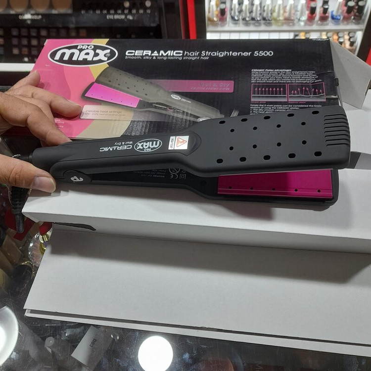 اغلب اوقات برای صاف کردن موها توسط اتو مو باید صبر کرد تا موها کاملاً خشک شوند و یا اینکه ابتدا توسط سشوار موها را خشک کرده و سپس از اتو مو استفاده شود. اما اتو مو سرامیک خشک و تر پرومکس مدل ۵۵۰۰ به کمک صفحات سوراخداری که دارد برای صاف کردن موهای خشک و مرطوب قابلاستفاده است. عرض صفحات اتو مو ۴۵ میلیمتر است و برای موهای بلند و متراکم بسیار مناسب است. رطوبت روی موها پس از بخار شدن از سوراخهای تعبیهشده روی صفحات بیرون میزنند. بخار ایجاد شده کار صاف کردن موها را راحت تر می کند و حالت نرم تری به موها می دهد. در کنار دکمهی روشن/خاموش، کلید چرخشی تنظیم دما دیده میشود. به کمک این کلید میتوان دمای صفحات را از ۸۰ تا ۲۱۰ درجهی سانتیگراد تنظیم کرد. روی بدنهی اتو مو از لاستیک ضد لغزشی استفادهشده که در دست گرفتن دستگاه را لذتبخشتر میکند و از لیز خوردن اتو از دست جلوگیری میکند. سیم برق اتو مو ۳ متر طول داشته و در محل اتصال به بدنه قابلیت چرخش دارد. حالت چرخشی سیم باعث میشود ضمن راحت کردن کار با اتو مو، از گره خوردن و فرسودهشدن سیم جلوگیری میکند. در انتهای سیم حلقهای برای آویزان کردن دستگاه وجود دارد. بهطور خلاصه اتو مو پرومکس مدل ۵۵۰۰ دارای صفحات سوراخدار با عرض ۴۵ میلیمتر، کلید چرخشی تنظیم دما از ۸۰ تا ۲۱۰ درجهی سانتیگراد، بدنهی لاستیکی ضد لغزش، سیم بلند با قابلیت چرخش و حلقهی آویختن بوده و برای صاف کردن موهای خشک و مرطوب قابلاستفاده است. این محصول دارای ۲۴ ماه گارانتی است !