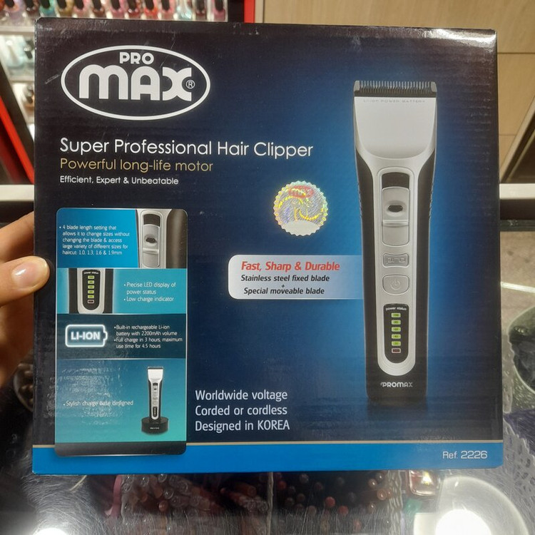 ۳ ساعت شارژ و ۴.۵ ساعت استفاده قابل استفاده با برق و شارژ تکنولوژی و طراحی کره ماشین اصلاح سر و صورت پرومکس مدل ۲۲۲۶ دارای تیغهای از جنس استیل ضد زنگ با طول اصلاح ۱ تا ۱.۹ میلیمتر بوده و با برق و باتری قابلاستفاده است. تیغهی این ماشین اصلاح از استیل ضدزنگ ساخته شده و برای اصلاح موهای سر مناسب است. طول اصلاح این تیغه را میتوان به کمک اهرم کنار دستگاه تغییر داد. البته برای اصلاح موها در اندازههای بیشتر ۲ عدد شانهی اصلاح نیز ارائه شده است. طول اصلاح این شانهها ۶-۳ و ۱۲-۹ میلیمتر است. ماشین اصلاح پرومکس به باتری قابل شارژ مجهز شده است تا بتوان به شکل بیسیم از آن استفاده کرد. البته خوشبختانه در صورت تمام شدن شارژ باتری میتوان با اتصال دستگاه به برق نیز کار اصلاح را انجام داد. برای اینکه تیغهی ماشین اصلاح همیشه در بهترین شرایط کارکرد قرار داشته باشد، پس از هر بار اصلاح باید خردههای مو را توسط برس مویی ارائه شده تمیز کرد. برای افزایش عمر تیغه باید مرتباً آن را روغنکاری کرد. برس مویی و روغن داخل جعبه وجود دارند. بهطورخلاصه ماشین اصلاح پرومکس مدل ۲۲۲۶ دارای تیغهی استیل ضدزنگ ، طول اصلاح قابل تنظیم از ۱ تا ۱.۹ میلیمتر، ۲ شانهی اصلاح از ۶-۳ و ۱۲-۹ میلیمتر و باتری قابل شارژ بوده و با برق و باتری میتوان از آن استفاده کرد. برای اینکه تیغهی ماشین اصلاح همیشه در بهترین شرایط کارکرد قرار داشته باشد، پس از هر بار اصلاح باید خردههای مو را توسط برس مویی ارائه شده تمیز کرد. برای افزایش عمر تیغه باید مرتباً آن را روغنکاری کرد. برس مویی و روغن داخل جعبه وجود دارند. بهطورخلاصه ماشين اصلاح سر و صورت پرومکس مدل ۲۲۲۶ دارای تیغهی استیل ضدزنگ ، طول اصلاح قابل تنظیم از ۱ تا ۱.۹ میلیمتر، ۲ شانهی اصلاح از ۶-۳ و ۱۲-۹ میلیمتر و باتری قابل شارژ بوده و با برق و باتری میتوان از آن استفاده کرد.