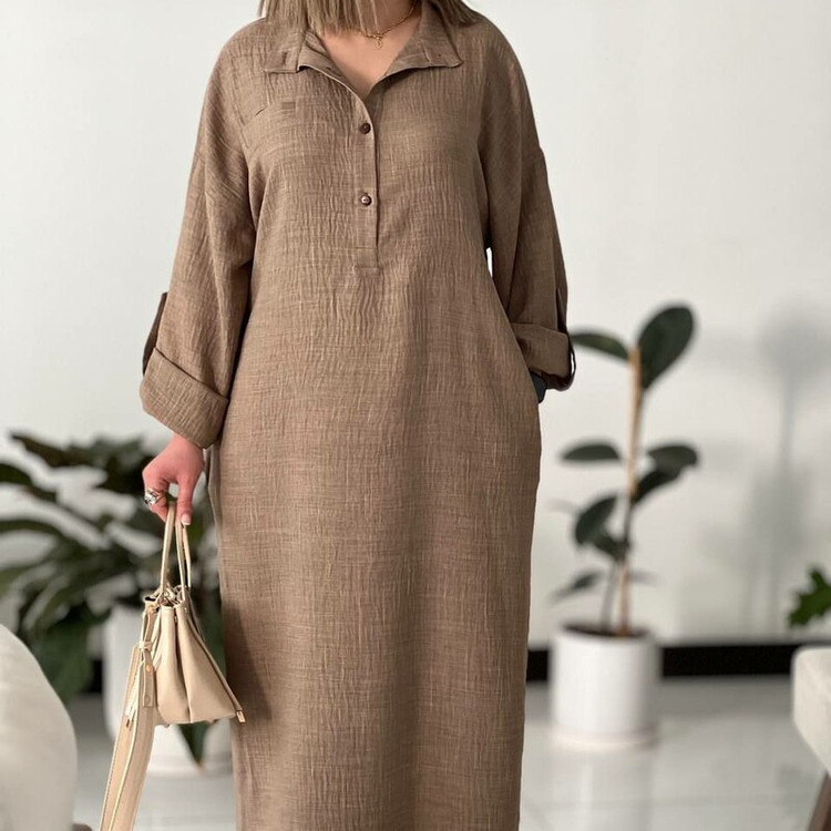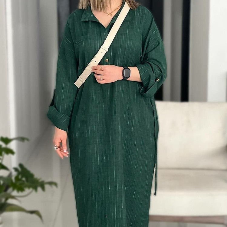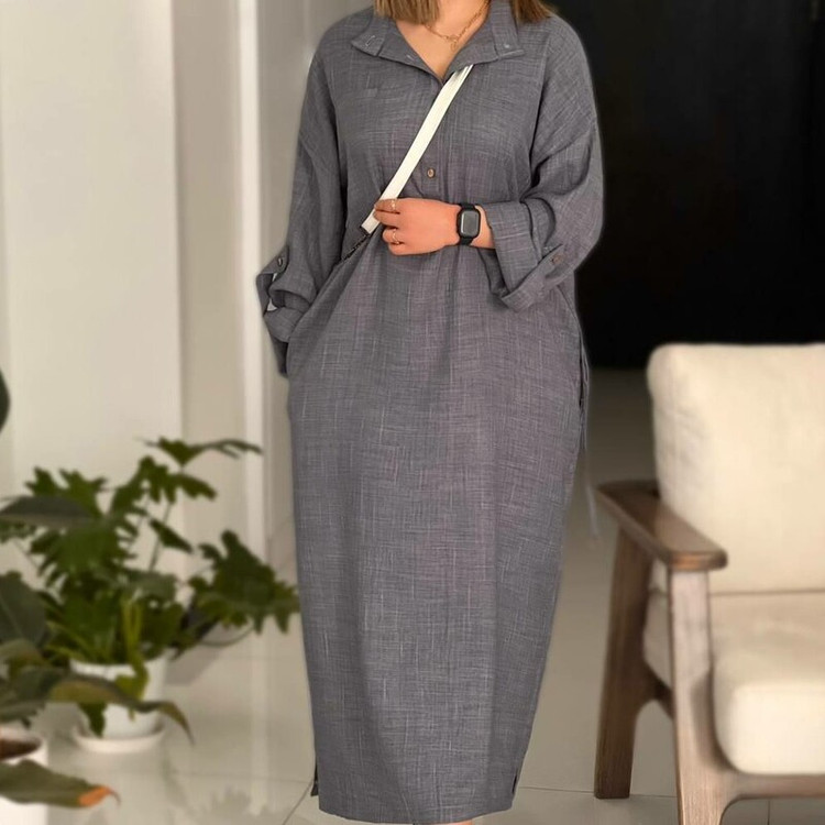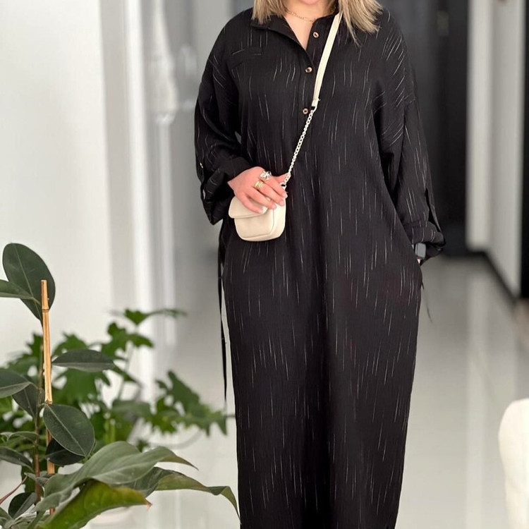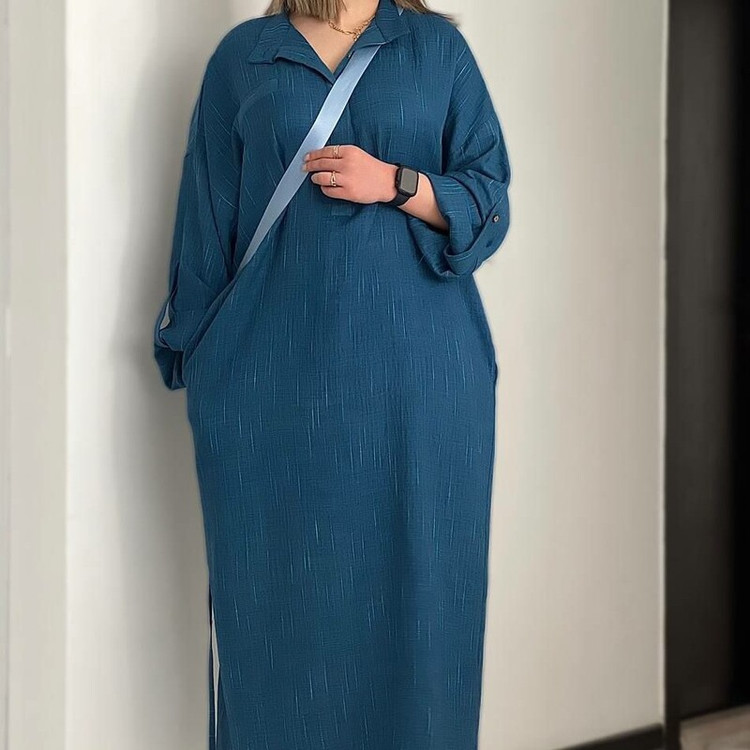 پیراهن کفتان بلند فری سایز تا 50 شانتون اسلپ گرم بالا قد 130