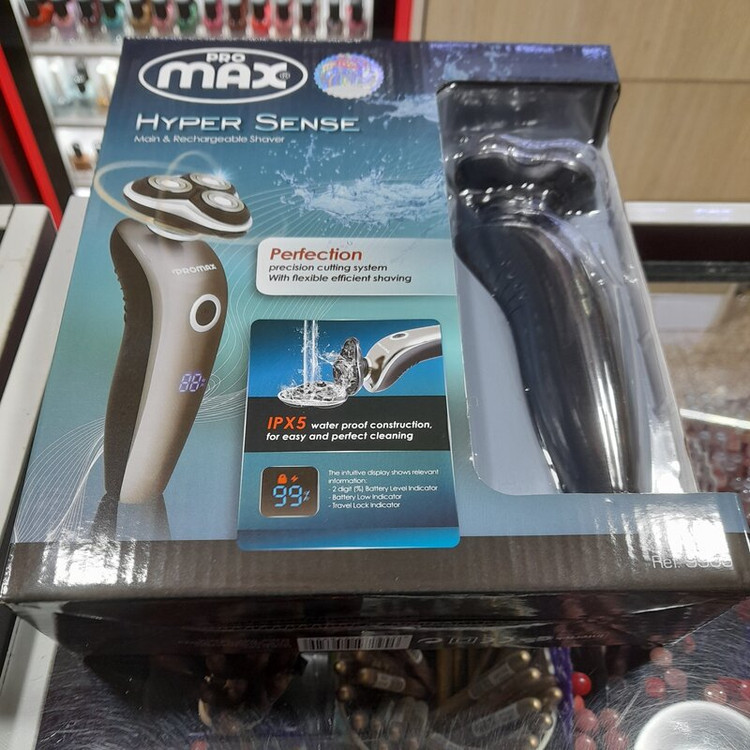 ریش تراش پرومکس مدل 9900 ریشتراشی چرخشی با خط زنی دوطرفه و صفحهنمایش مخفی بوده و با برق و باتری قابل شارژ کار میکند. تیغههای ماشین اصلاح از استیل ضدزنگ هستند و موهای صورت را از نزدیکترین نقطه به پوست قطع میکنند. ویژگی جالب این ماشین اصلاح خط زن آن است که به شکل یک سری جداگانه طراحی شده و جای سری چرخشی مینشیند. سری خط زن دو تریمر باریک و عریض دارد که برای خط انداختن و مرتب کردن موهای ریش و سبیل بسیار مناسباند. عرض خط زن پهن 32 میلیمتر و عرض خط زن باریک 8.3 میلیمتر است. ریش تراش پرومکس مدل 9900 به باتری لیتیوم یونی قابل شارژی مجهز است که در مدتزمان 1.5 ساعت شارژ کامل میشود و پس از آن تا 1 ساعت میتوان به شکل بیسیم از دستگاه استفاده کرد. برخلاف بعضی ماشینهای اصلاح، از این مدل در حالت متصل به شارژر هم میتوان استفاده کرد و مشکلی بابت تمام شدن ناگهانی شارژ باتری وجود ندارد. درصد باتری باقیمانده را میتوان روی صفحهنمایش دیجیتال ماشین اصلاح مشاهده کرد. این صفحهنمایش در ظاهر مخفی است و با روشن کردن دستگاه دیده میشود. برای شارژ کردن باتری میتوان شارژ را مستقیماً به انتهای ماشین اصلاح وصل کرد؛ اما راه راحتتر استفاده از پایهی شارژی است که همراه دستگاه ارائه شده و ماشین اصلاح به شکل ایستاده روی آن قرار میگیرد. از ویژگیهای ظاهری ماشین اصلاح باید به طراحی ارگونومیک آن اشاره کرد که در دست گرفتن و استفاده از آن را راحتتر میکند. این ماشین اصلاح با داشتن گواهینامه IPX5 در برابر پاشیدن آب مقاوم است. بنابراین میتوان پس از اصلاح بهراحتی سر آن را زیر شیر آب گرفت و شست. توجه داشته باشید که دستگاه نباید کاملا در آب غوطهور شود. برای نگهداری از ماشین اصلاح میتوان از کیف پلاستیکی آن استفاده کرد که البته کیفیت خوبی ندارد. به طور خلاصه ماشین اصلاح Promax 9900 دارای تیغههای چرخشی از جنس استیل ضدزنگ، خط زن جدای دوطرفه، باتری لیتیوم یونی قابل شارژ، پایهی شارژ، صفحهنمایش دیجیتال، طراحی ارگونومیک و قابلیت شستشو بوده و به شکل بیسیم و باسیم قابلاستفاده است.