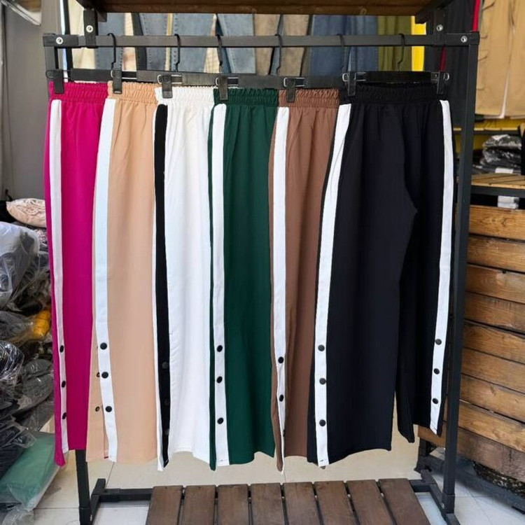 شلوار نیم بگ نوار دار کرپ مازراتی درجه یک در رنگ بندی متنوع سایز 38 تا 50 قد 100
