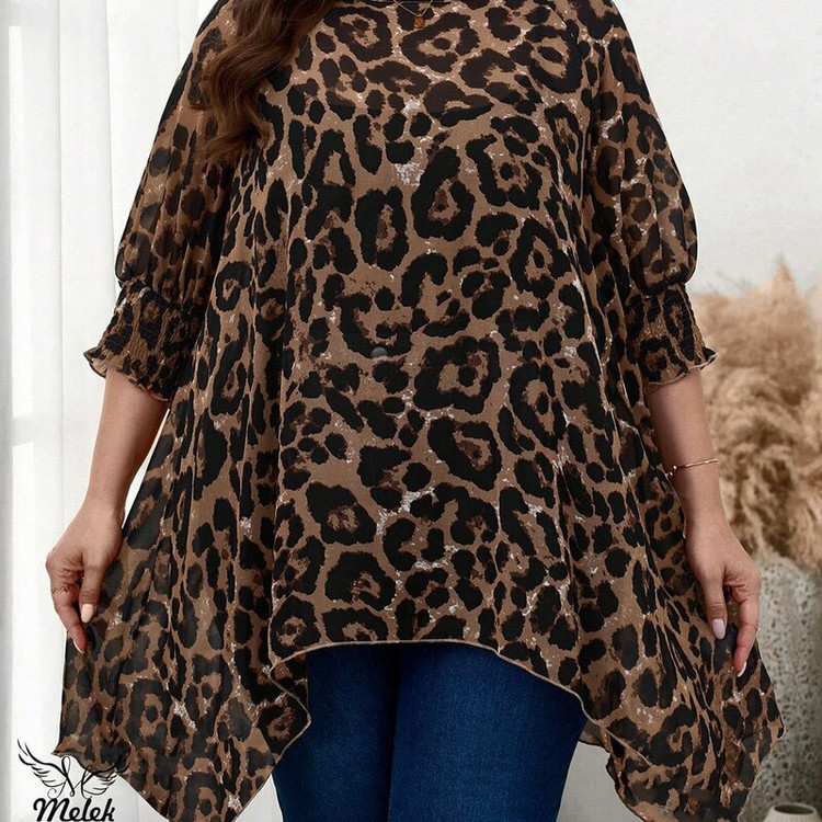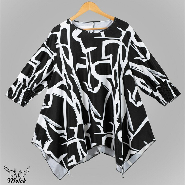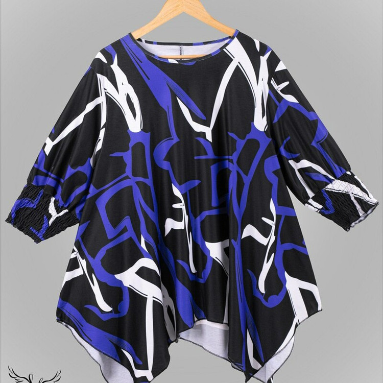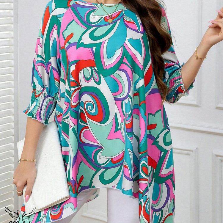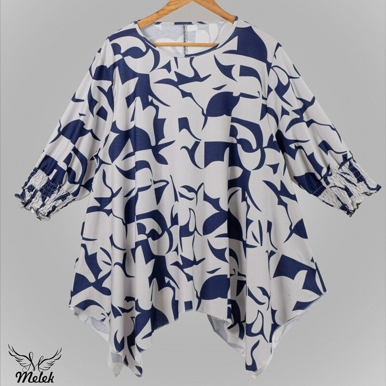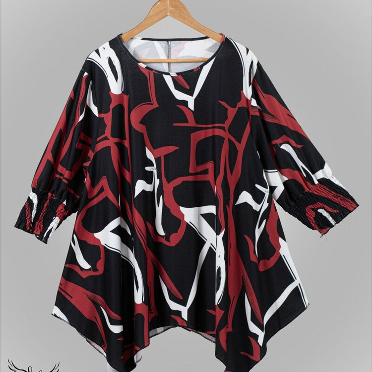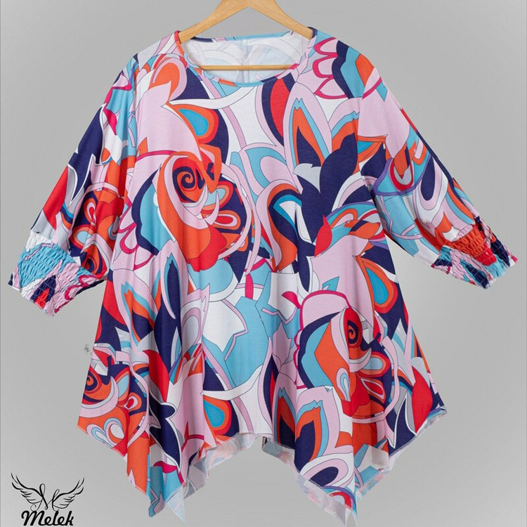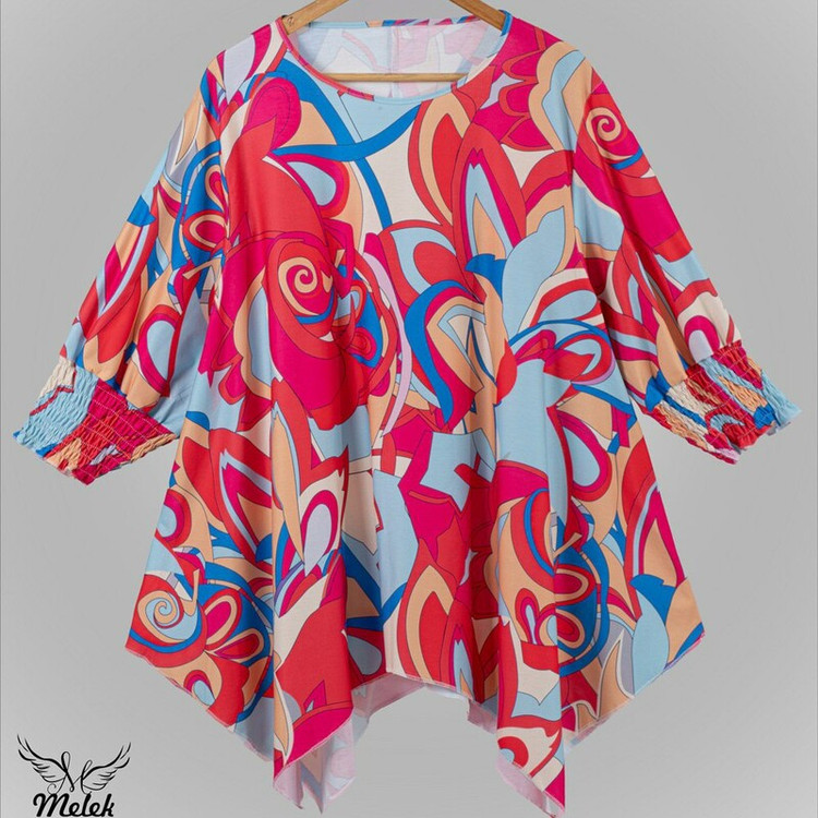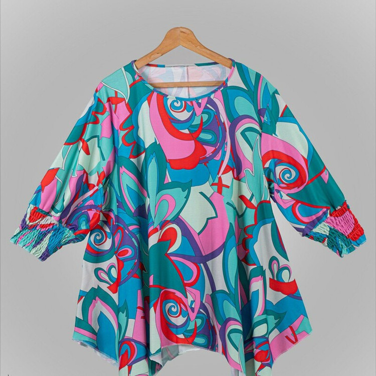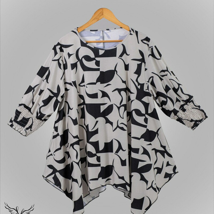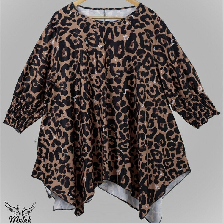 شومیزسایزبزرک فانتزی یقه گردسرآستین کش دارددامن هلالی جنس نخ پنبه وارداتی