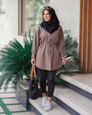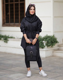 مانتو دانشجویی کوتاه کمرگت دار فری سایز تا ۴۶