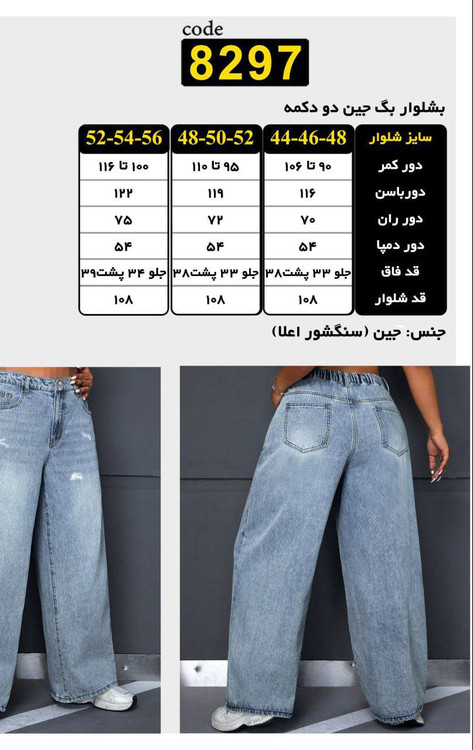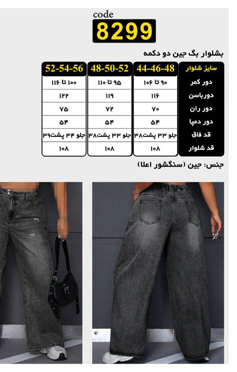 شلوار بگ جین سایز بزرگ سایز ۴۴تا ۵۶