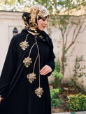 عبا بلند مشکی مزونی گلدوزی شده سایز ۳۶ تا ۶۰