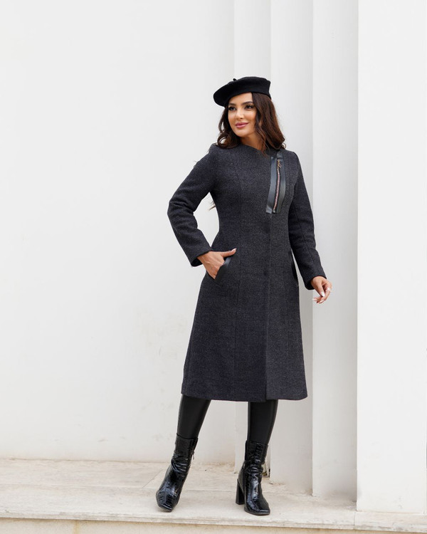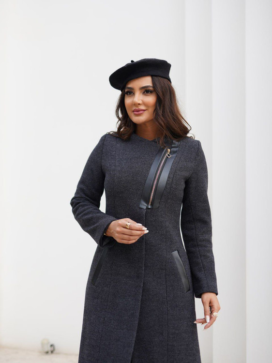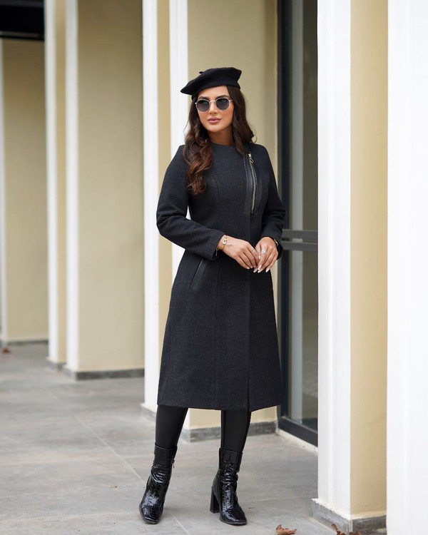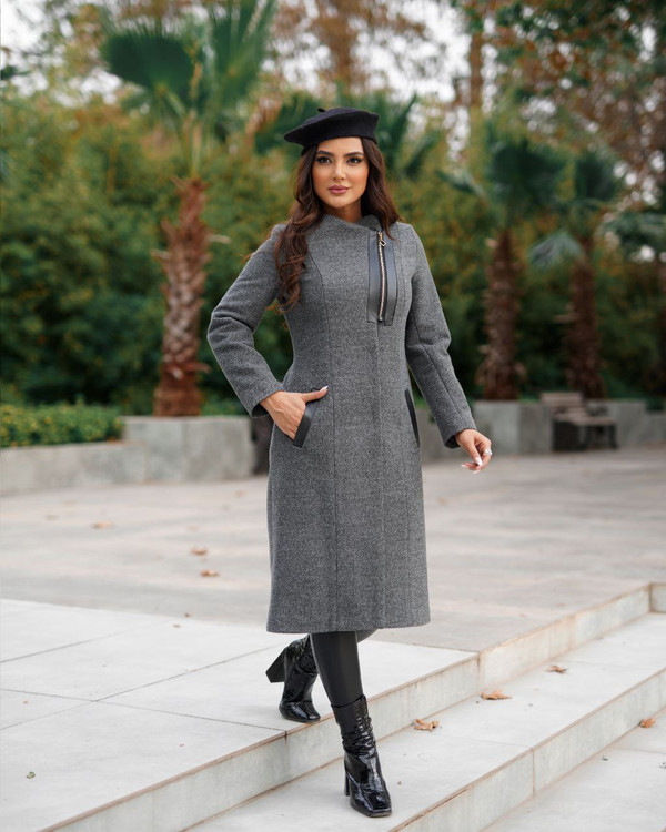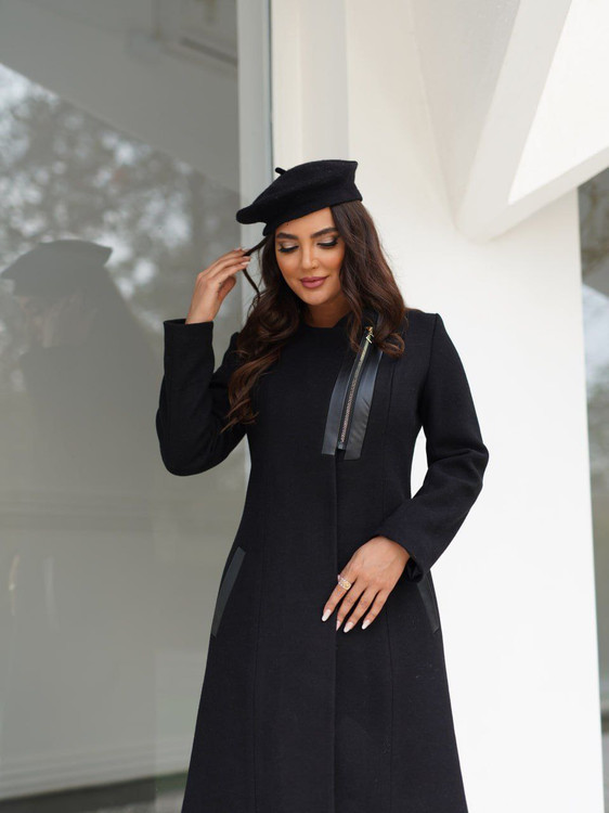 پالتو فوتر یقه گرد چرم دوزی مدل غزاله
