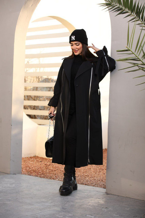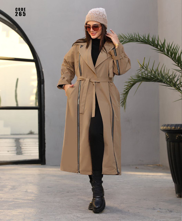 بارونی بلند کتان تی سی آستر کشی شده سایز ۳۸ تا ۵۶