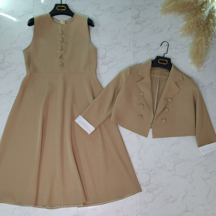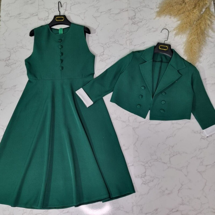 دو تیکه 😍 جنس : مازراتی رنگ بندی : آبی, سبز, کرم, مشکی سایز ها : (38.40.36) (1), (42.44.46) (2) 💕قد سارافن 115💕قد کت حدود ۴۴💕قد استین کت46🟢سایز یک سارافن .دور سینه 92.دور کمر 85🟢سایز یک کت .دور سینه حدودا ۹۸.دور بازو۳۰🟣سایز دو سارافن.دور کمر 100،دور سینه 105🟣سایز دو کت دور سینه 105.دور بازو ۳۶