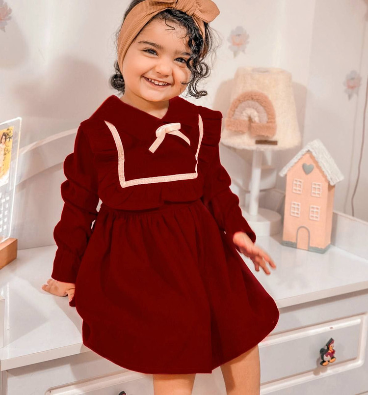پیراهن دخترانه مخمل کبریتی یلدایی
