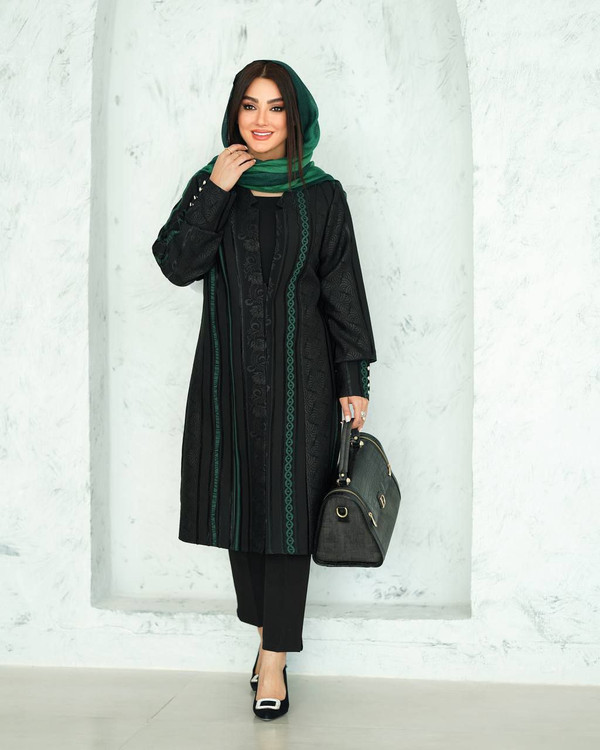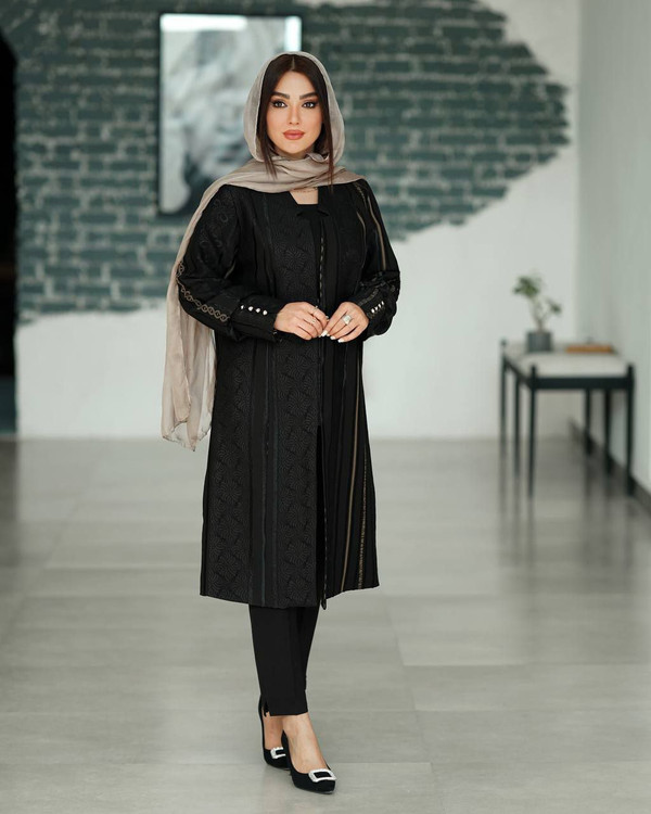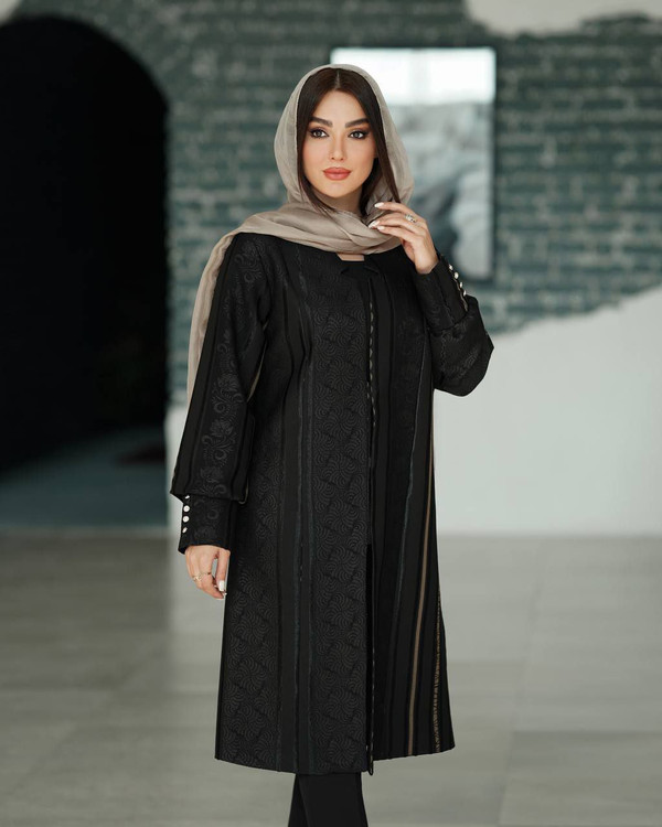مانتو بلند مشکی ژاکارد سایز بزرگ