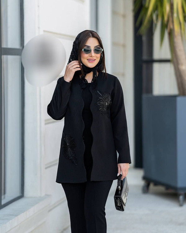 🔵 رنگبندی : مشکی با دو طرح گل و پروانه