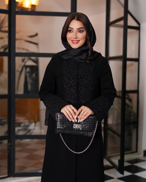 کرپ مرویجت (کشمیر) یقه گرد خاویاری دامن کلوش مدل آرتیمیس