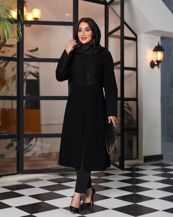 مانتو بلند مشکی مجلسی کرپ مرویجت سایز بزرگ سایز ۴۲ تا ۵۶