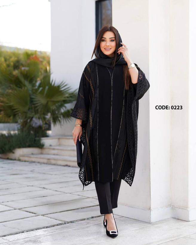 مانتو بلند ژاکارد با خرجکار گیپورفری سایز تا ۵۶