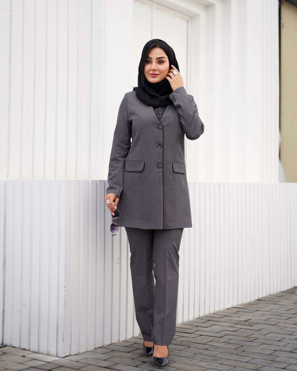 👗 کت و شلوار اداری یقه دیپلمات مدل نوریا