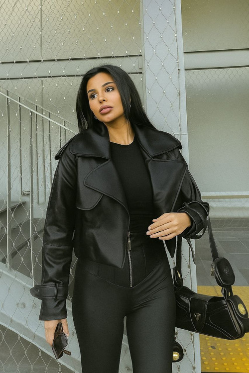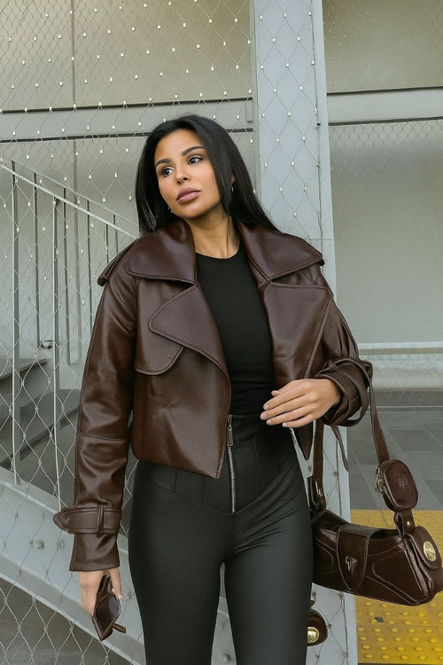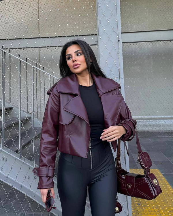 کراپ کت چرم زنانه
