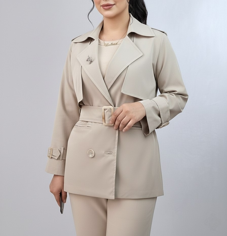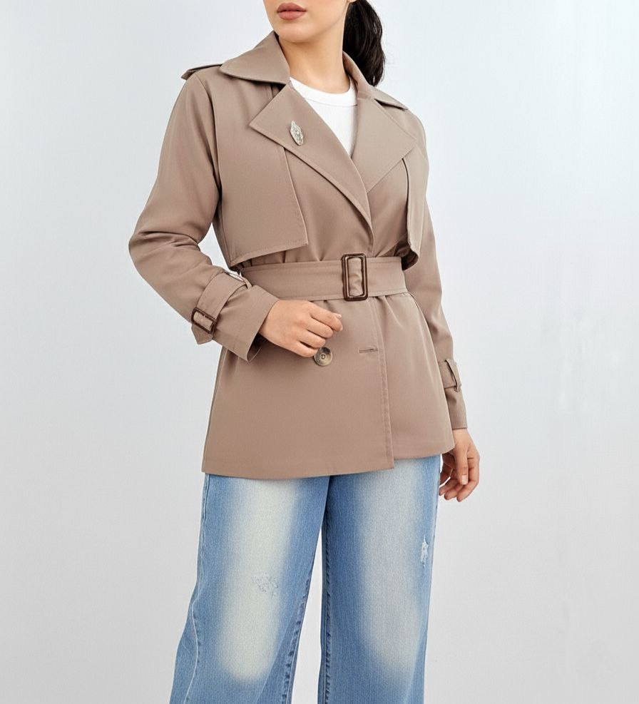بارونی کوتاه زنانه آستردار کتان زارا درجه یک