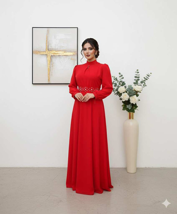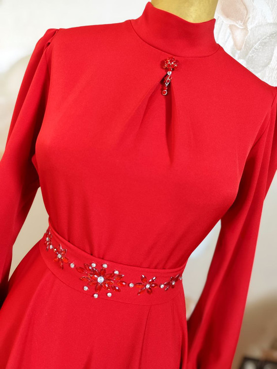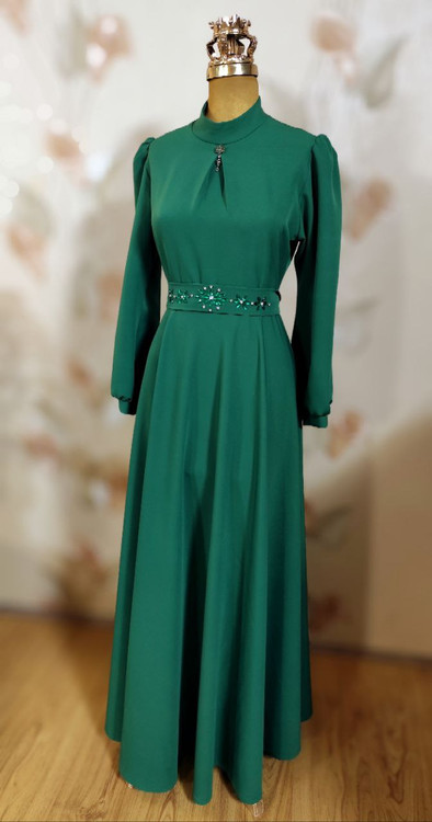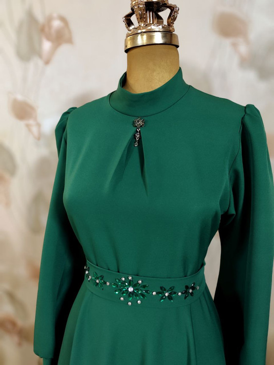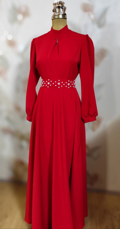 ✅پیراهن به همراه کمربند تزئین شده و سنجاق یقه هدیه