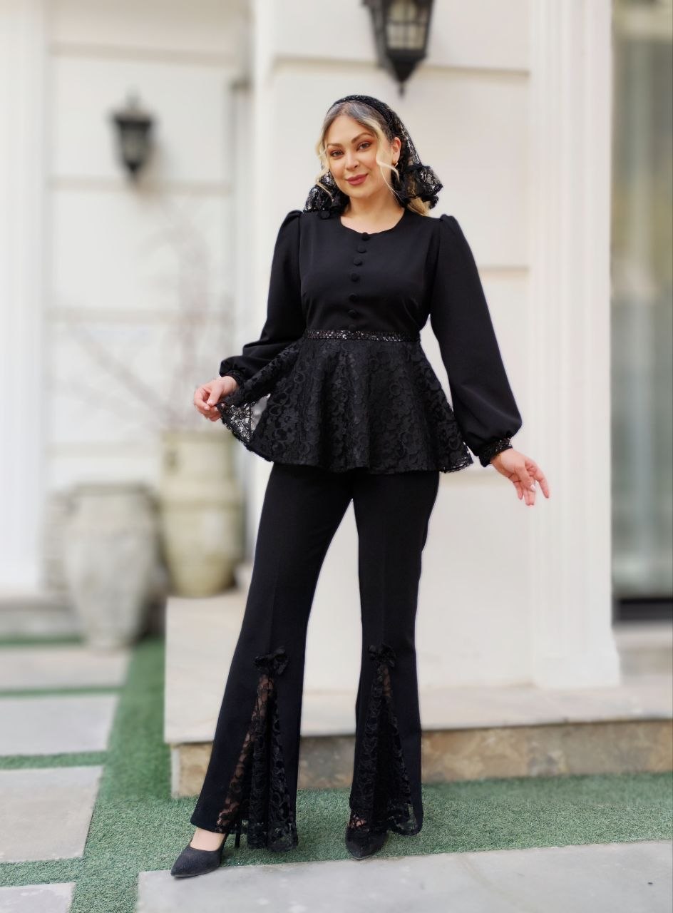✅پشت شومیز زیپ مخفی دارد و دکمه های جلو نمادین است