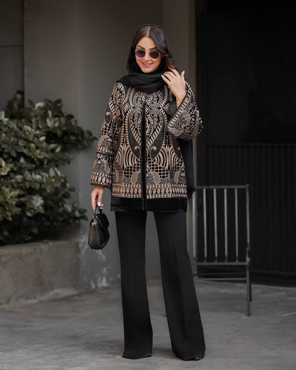 🧥مدل :کت یقه گرد تمام هندی مغزی دوزی نوار کریستال (پشت و رو ) داخل تمام لایی پرشین