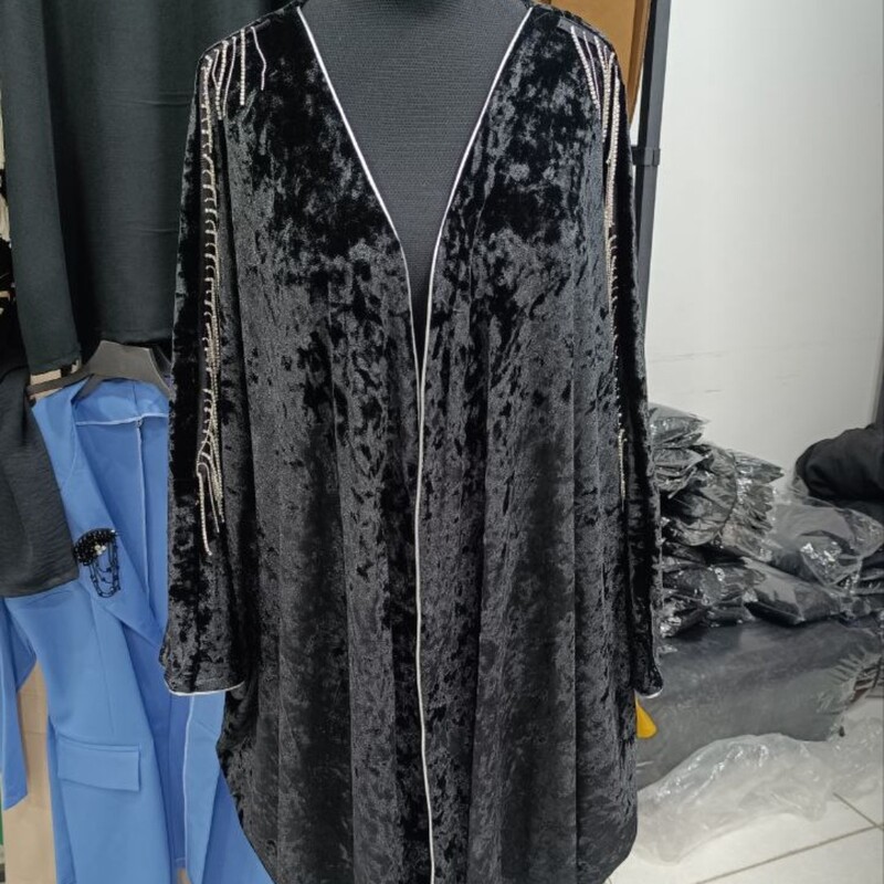 پانچ عبایی مخمل سرشانه زنجیری فری سایز