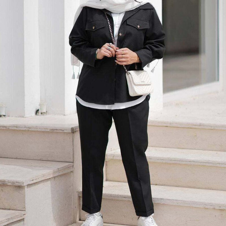 ست سه تیکه مانتو شلوار شومیز زنانه فری سایز تا 46