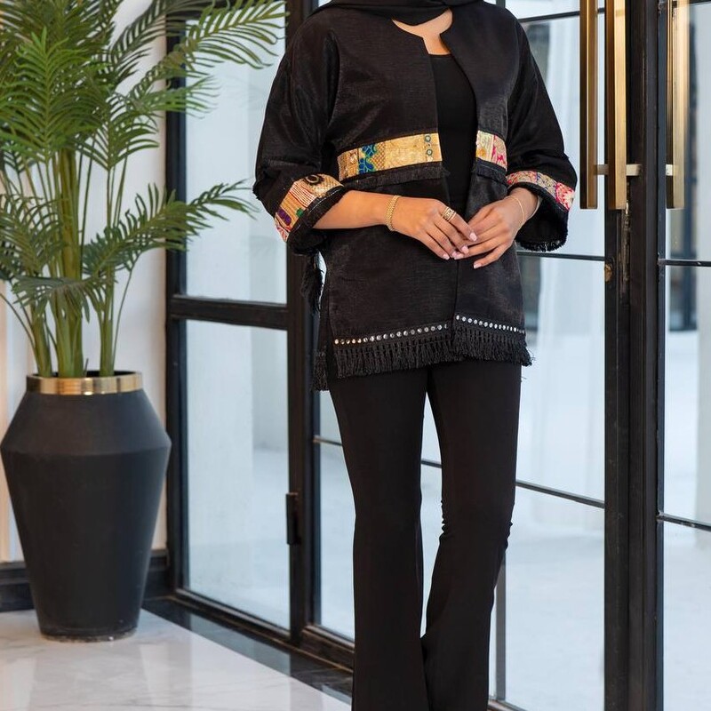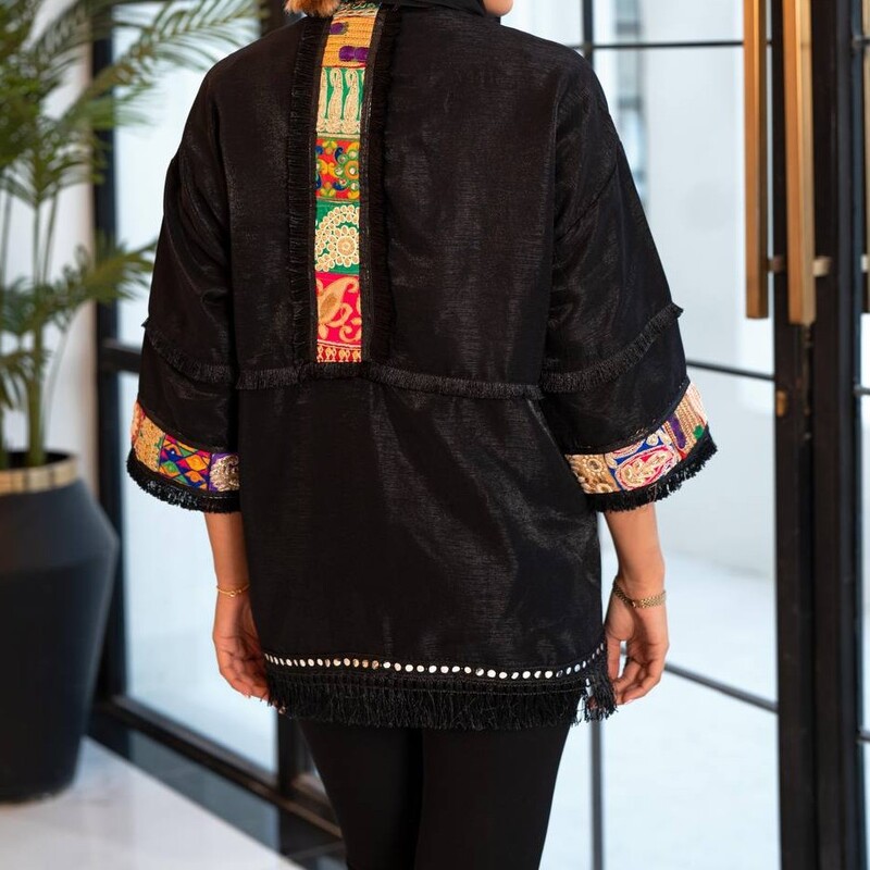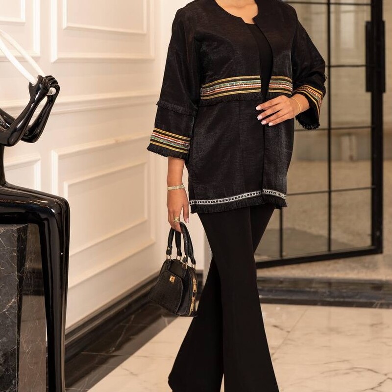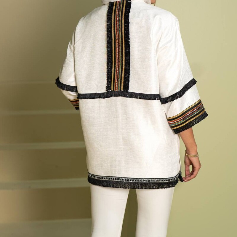 مانتو کتی سفید و مشکی دارای نوار هندی سایز 36 تا 48