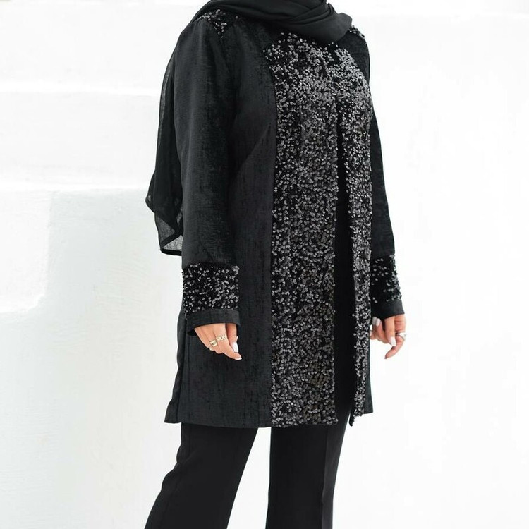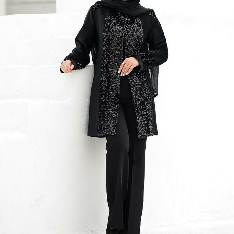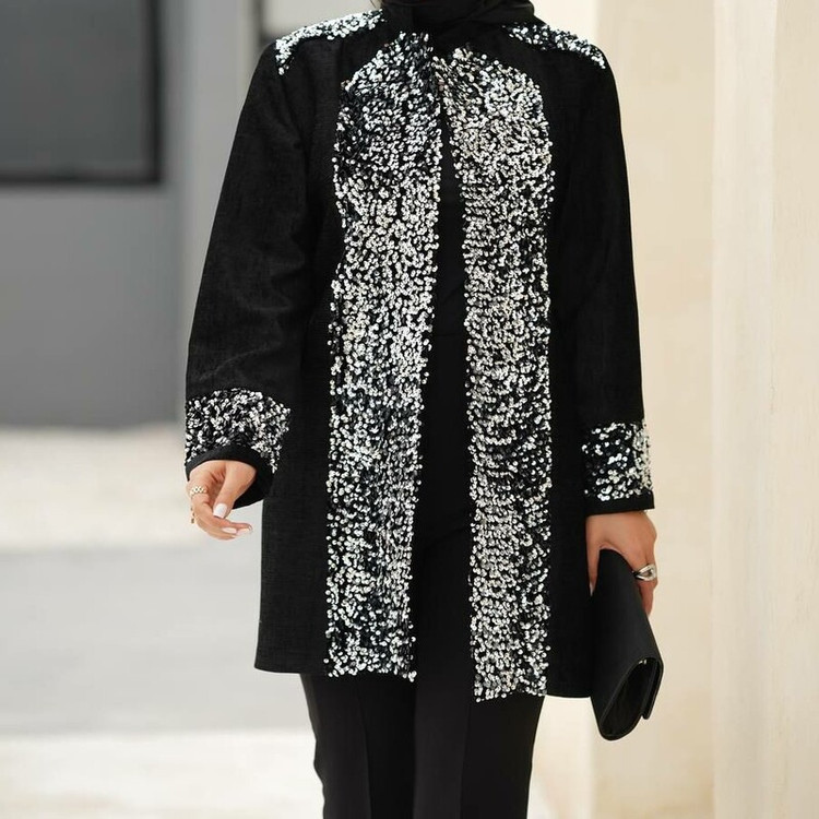 مانتو مجلسی مخمل و پولک دوزی قد 85 سایز 38 تا 46