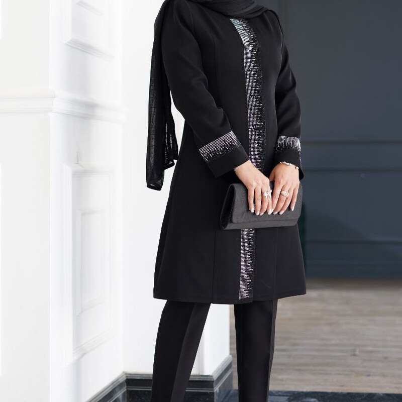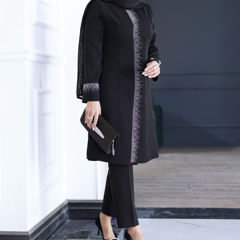 مانتو مجلسی مشکی نگین کاری شده کرپ باربی سایز 40 تا 50