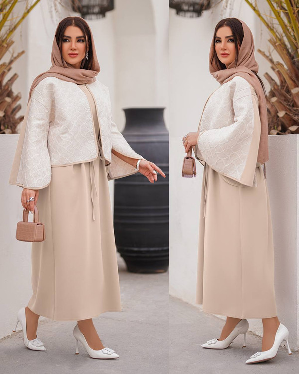 #عیدانه_۱۴۰۳ کت سارافون ترند و جذاب🥰✌️ استایل شیک برای خانومای شیک پوش😎😎 (کت آستین کلوش +سارافون آستین حلقه ای + بند کمر) جنس : ترکیب مازاراتی نخ توئیست و ژاکارد ترک👘 🎨 ۳ رنگ: کرم، مشکی(+ژاکارد طوسی)، مشکی(+ژاکارد سبز) 📏قد سارافون: ۱۳۰ سانت 📏قد کت: ۵۳ سانت ✂️سایز: فری سایز مناسب ۳۸ تا ۴۶