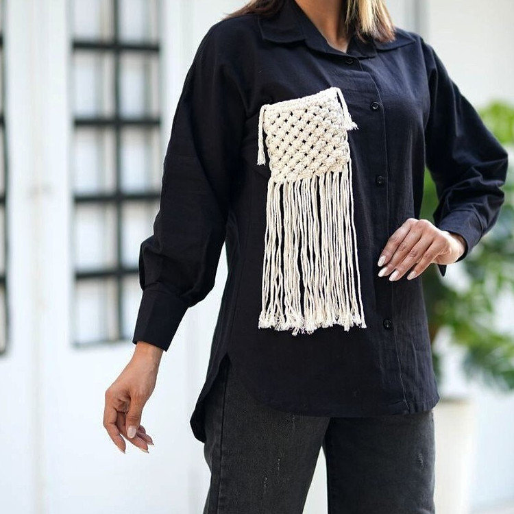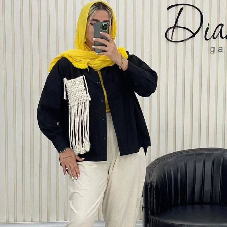 📌توضیحات :جیب مکرومه بافی باکیفیت. پارچه کااااملا مشکی، بدون ابرفت یا دون شدن.پشت کار ساده ست
