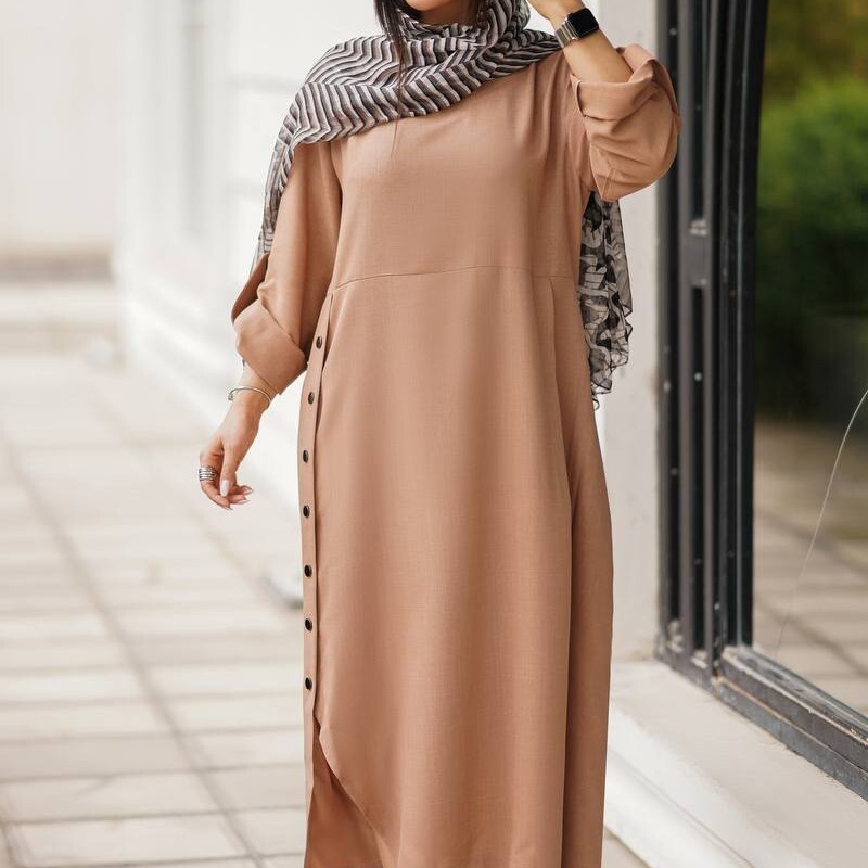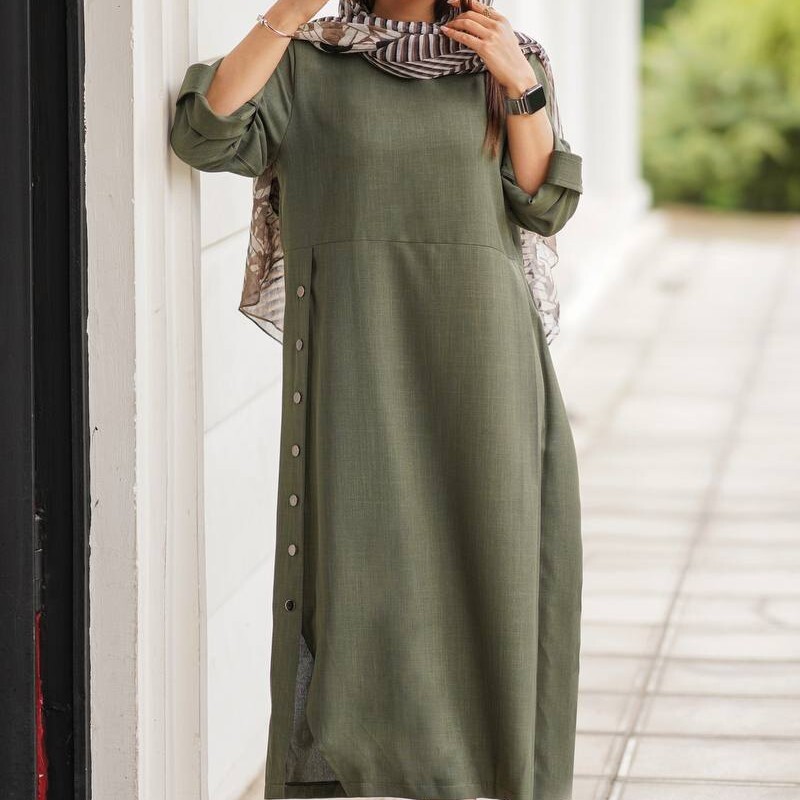 پیراهن کفتان بلند خنک و تابستونی شانتون تایوانی بدون آبرفت فری سایز تا 44