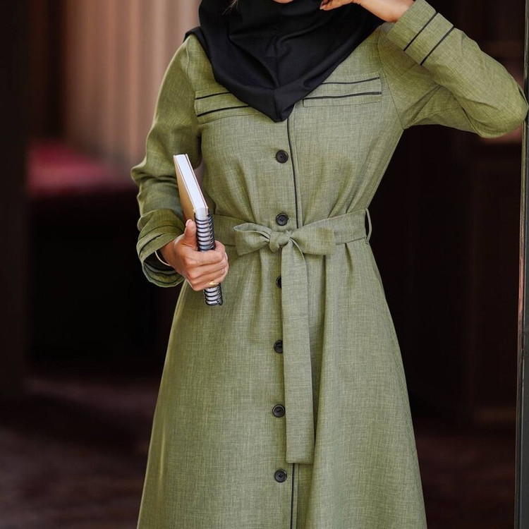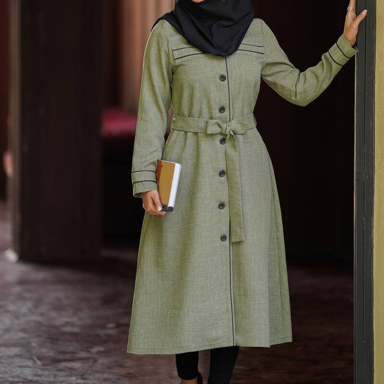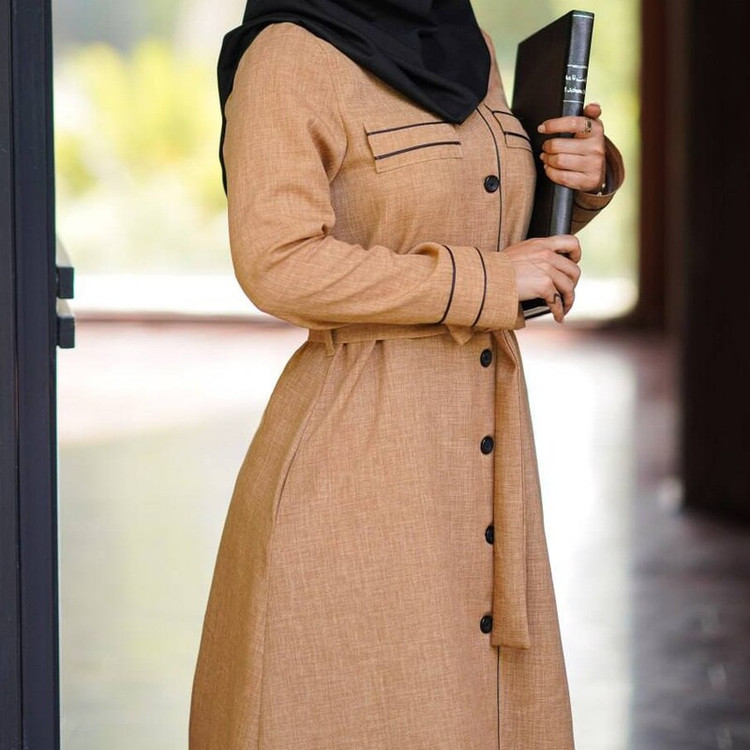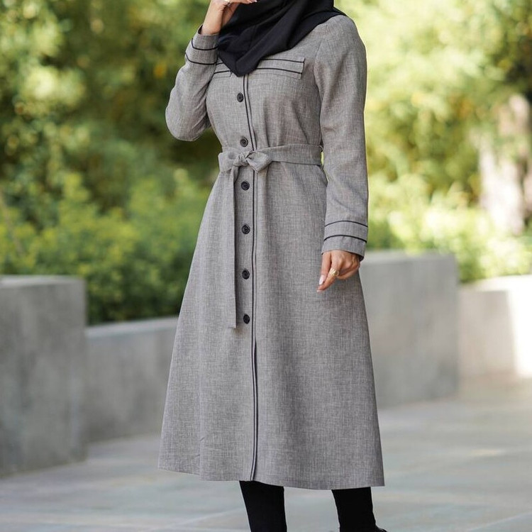 🔶مانتو بلند مغزی دوزی - یقه گرد